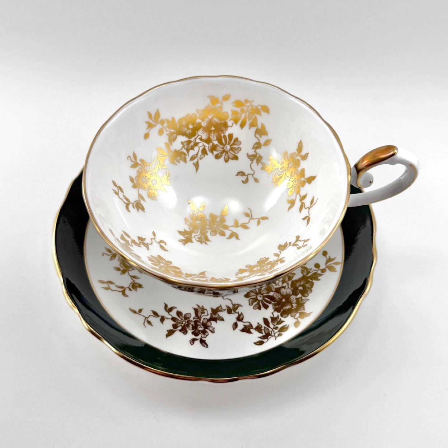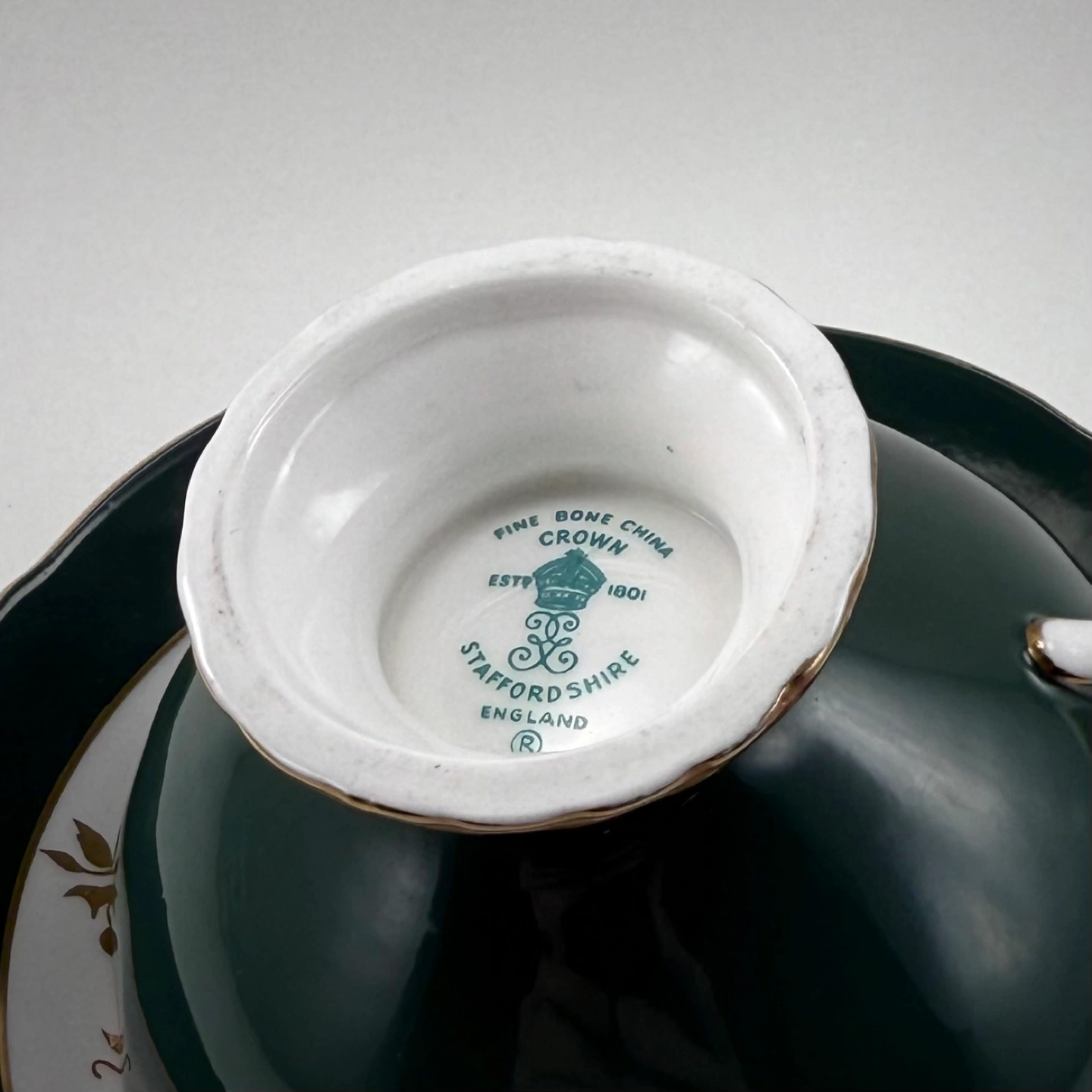 Vintage Crown Staffordshire (made in England) fine bone cu ins extra large breakfast teacup in dark green colour. Teacup is larger than standard size. No chips, cracks, crazing, gold loss or enamel flecks — high ping on both pieces when tapped Meetup Options: 1. Avenue Rd & St Clair Ave (public lobby or driveway of condo) or 2. Outside St Clair/Yonge subway station Sorry, no deliveries, other meetup spots or holds (will only hold during travel time for a confirmed pickup)
