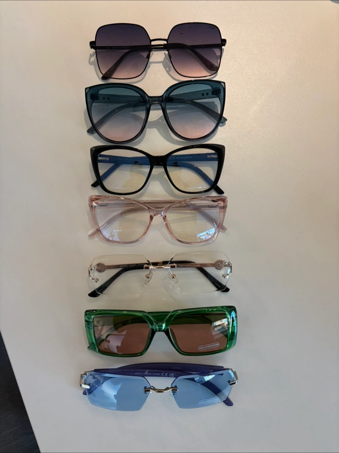 A collection of assorted sunglasses in various styles and colours. Perfect for adding some flair to your summer looks! $50 for all of them together.