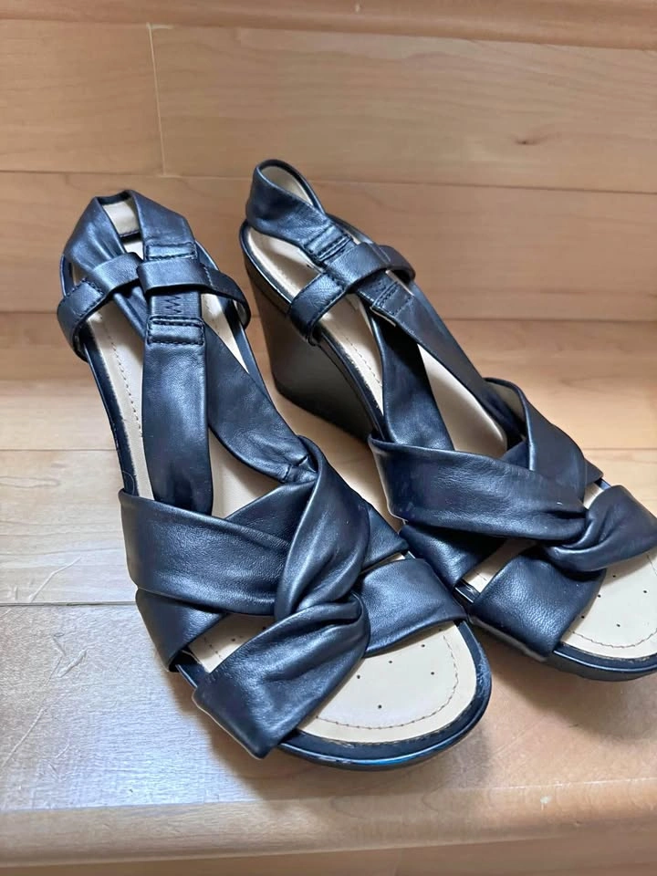 Geox Strappy Leather Heeled Sandals Size 9 3” heels Italian Patent Leather $30 Pick-up near Oakridge Centre