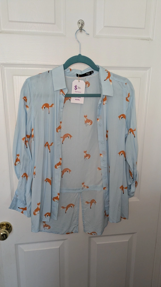A light blue MAX Studio shirt featuring a playful fox print! In great condition. Perfect for adding a touch of whimsy to your wardrobe 🦊
