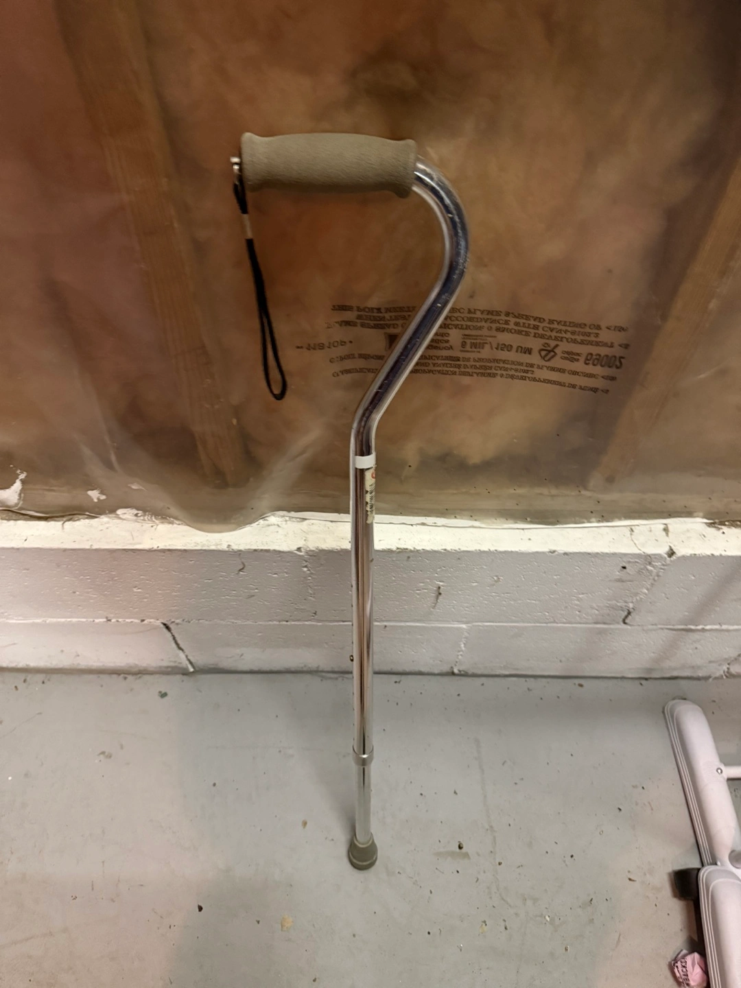 Selling a cane in good condition. It's a standard walking cane with a curved handle and a rubber tip. Perfect for anyone needing a bit of extra support while walking