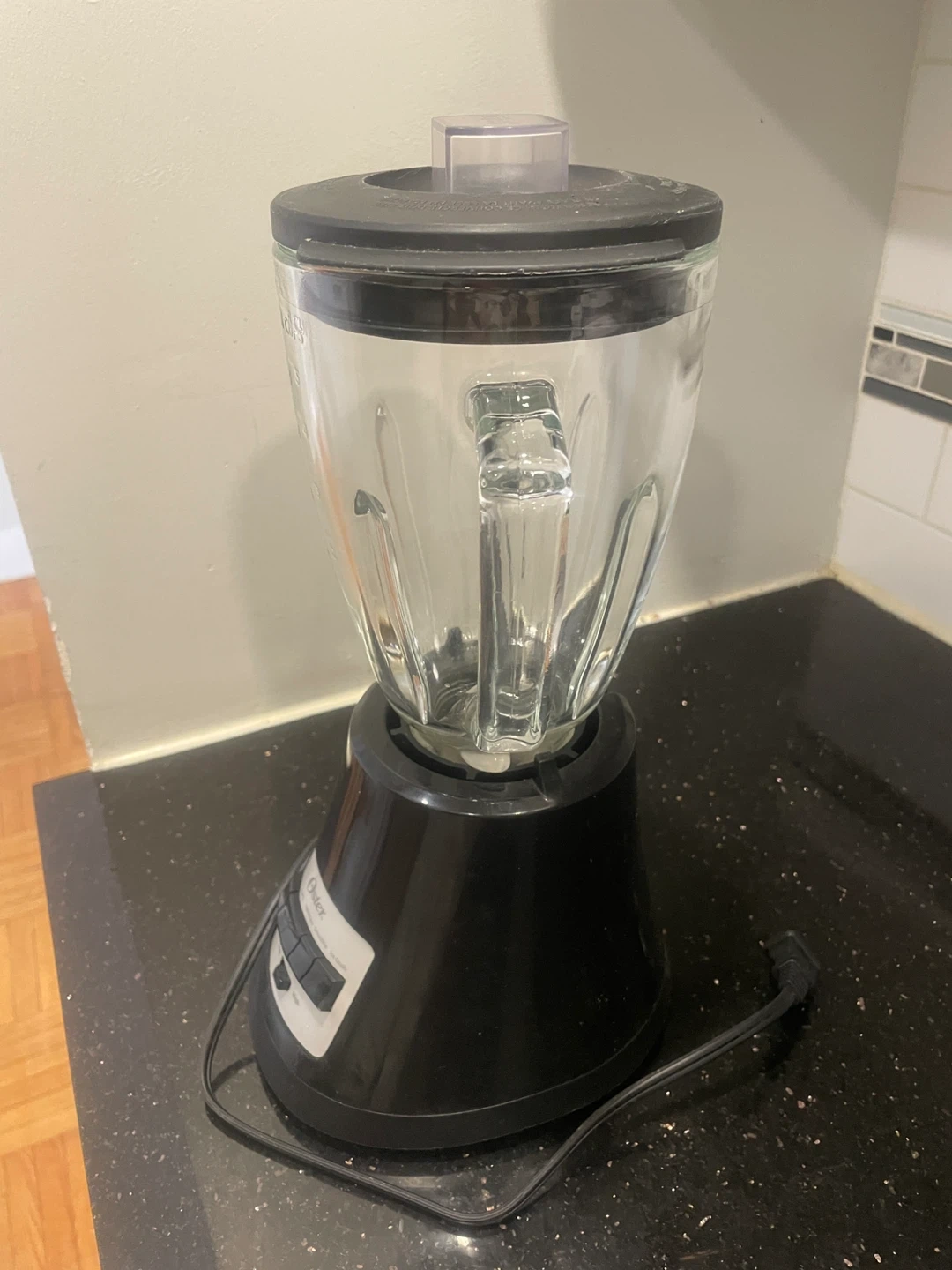 Selling an Oster blender with a glass jar and black base. It's in great condition and ready to whip up some smoothies or sauces!