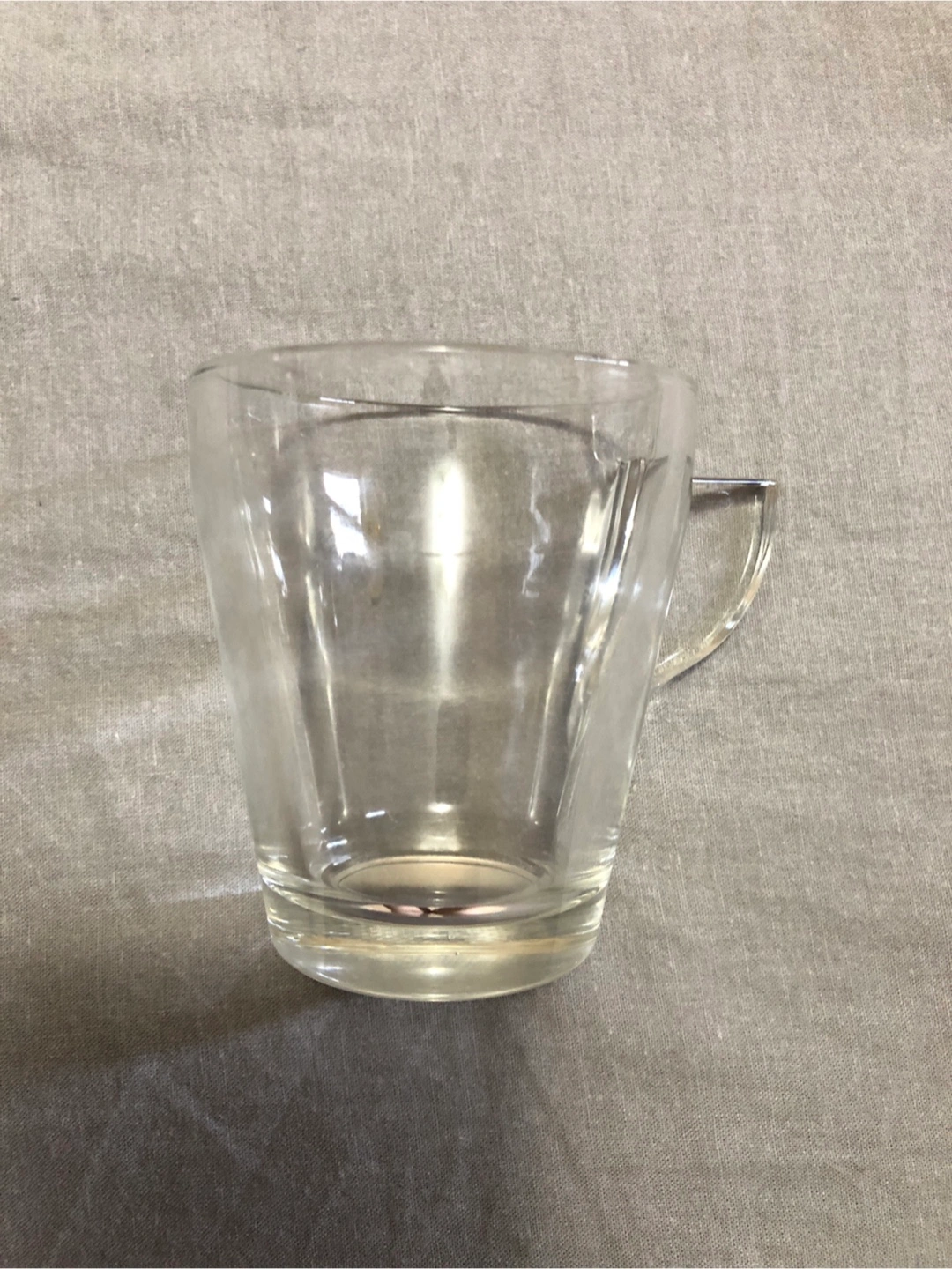 Selling a clear glass cup. It's in great condition and ready for a new home! Perfect for your morning coffee or tea