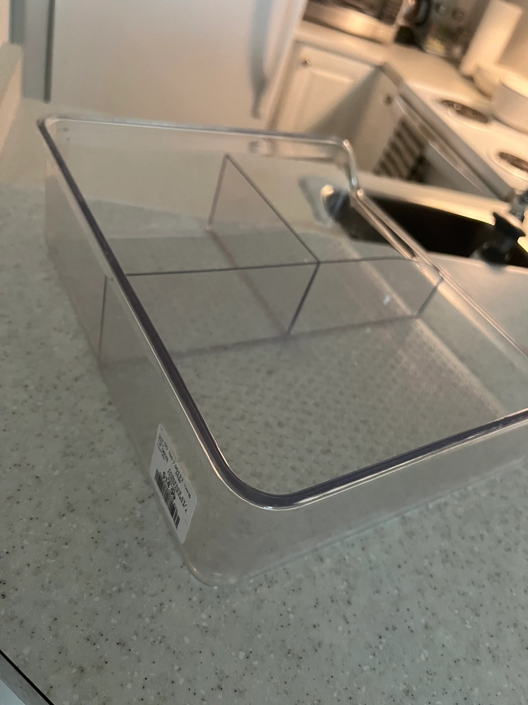 Selling a clear iDesign Linus divided tray! It's great for organizing drawers or countertops. It measures approximately 10 inches in length.