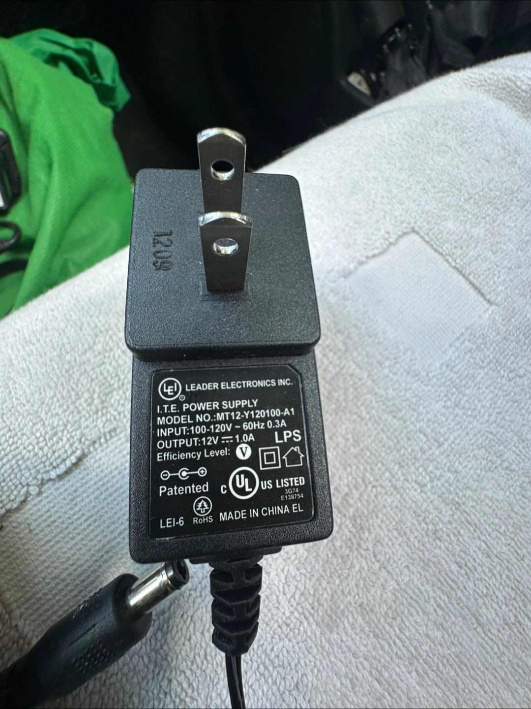 Selling a Leader Electronics Inc. power supply. Model number: MW12-Y120100-A1 Input: 100-120V ~ 60Hz 0.3A Output: 12V 1.0A