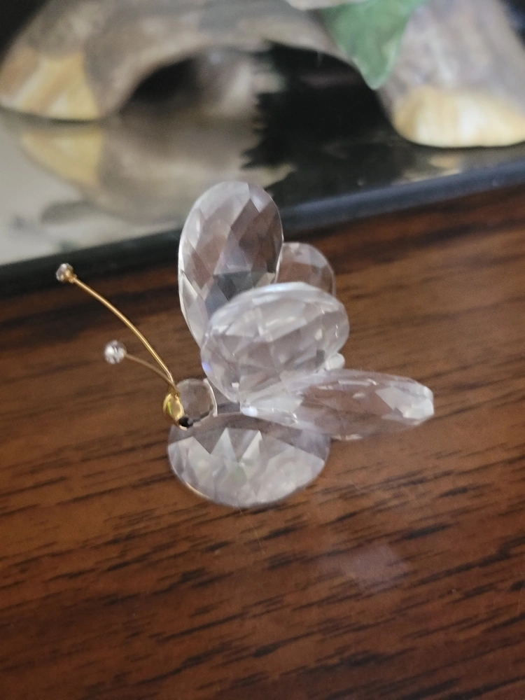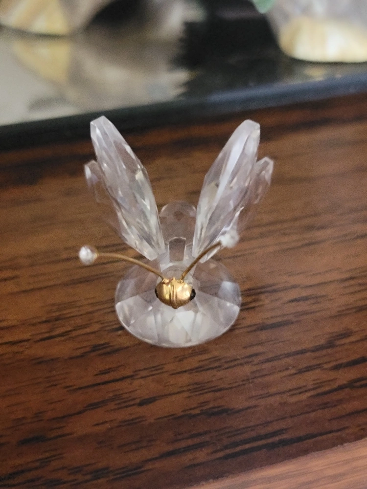 A beautiful Swarovski crystal butterfly figurine! It would look great on a shelf or desk. The crystal is clear and sparkly, and the butterfly design is very elegant