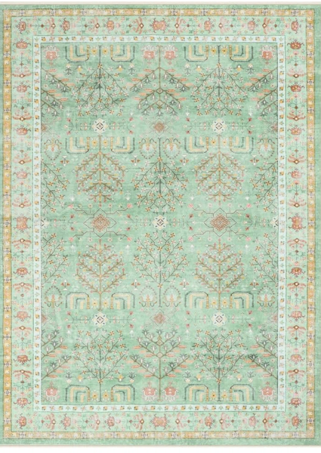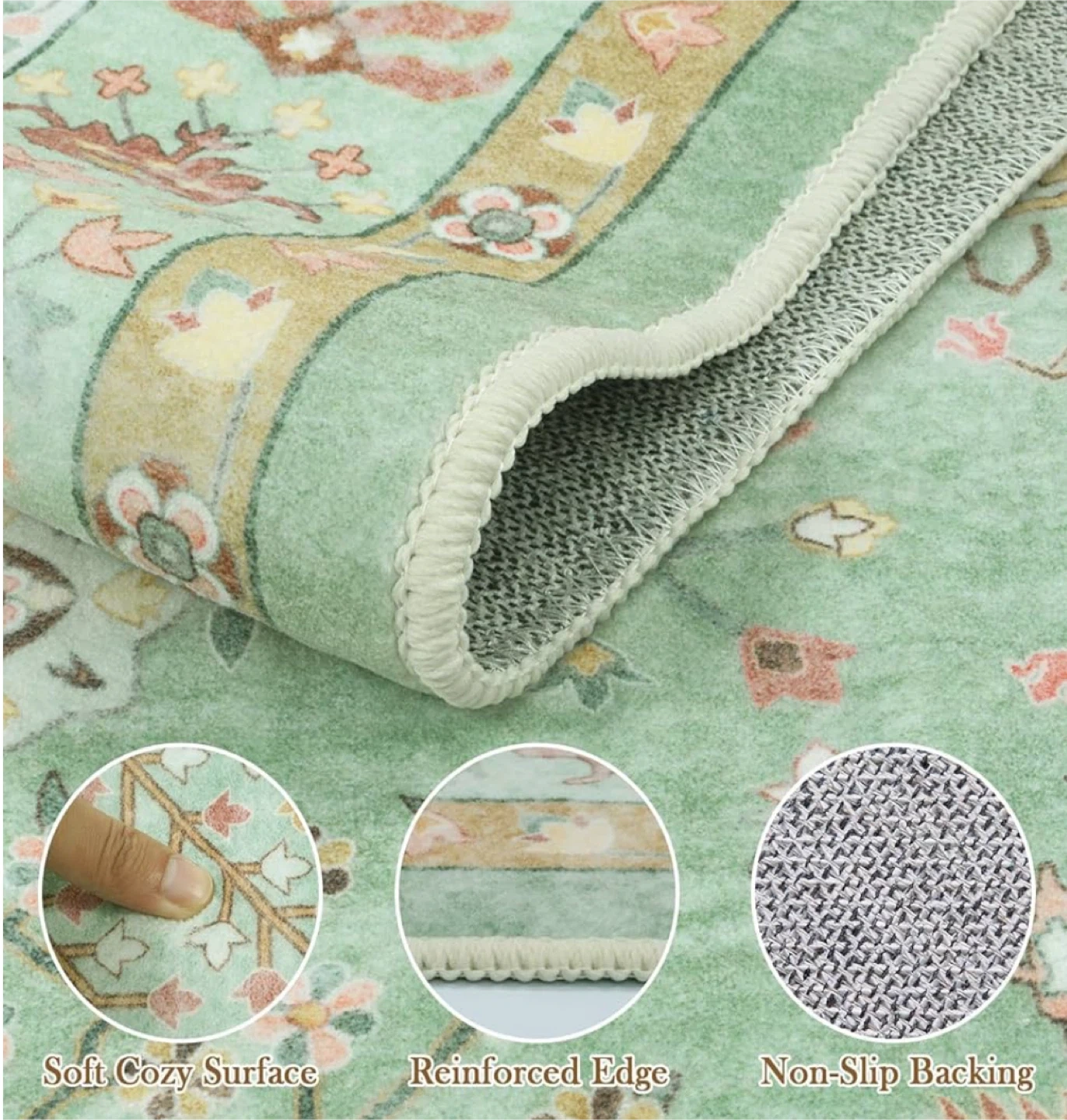 Add a touch of elegance to your home with this beautiful mint green area rug. The rug features a lovely floral pattern and a soft, cozy surface. It also has a reinforced edge and non-slip backing for added durability and safety. Perfect for any room in your home!