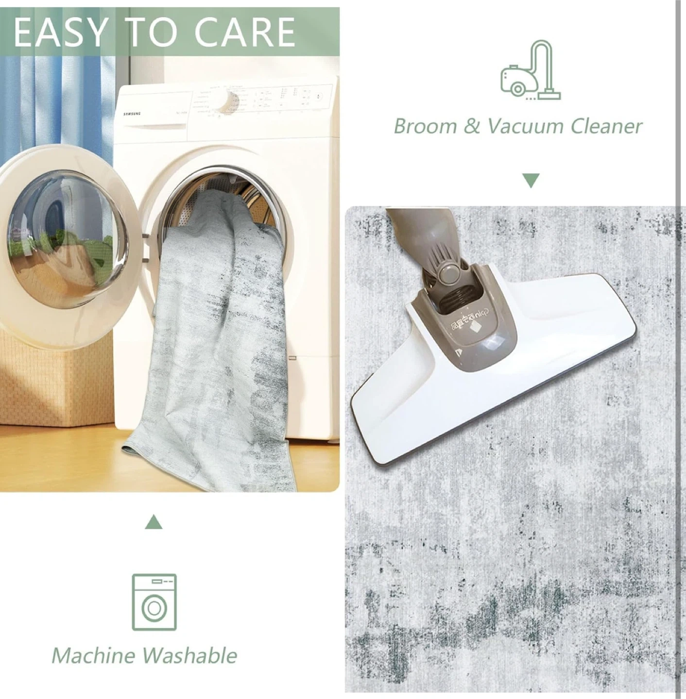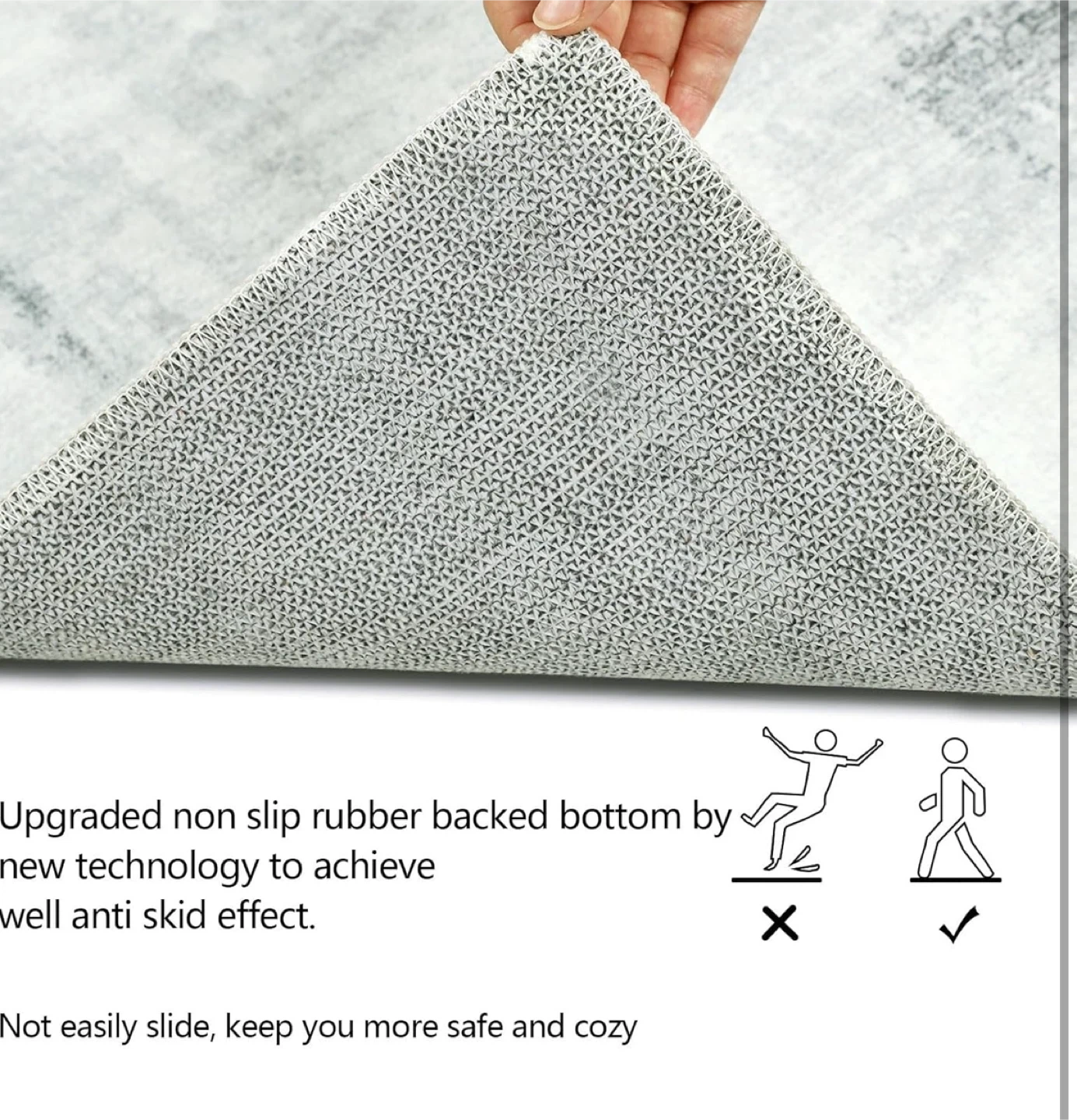 This thin and lightweight area rug is perfect for adding a touch of style to your home. It's easy to care for, as it's machine washable and can be cleaned with a broom or vacuum cleaner. The rug has a low pile of just 0.2 inches, so it blends easily with your floor and furniture. Plus, the upgraded non-slip rubber backing keeps you safe and cozy!