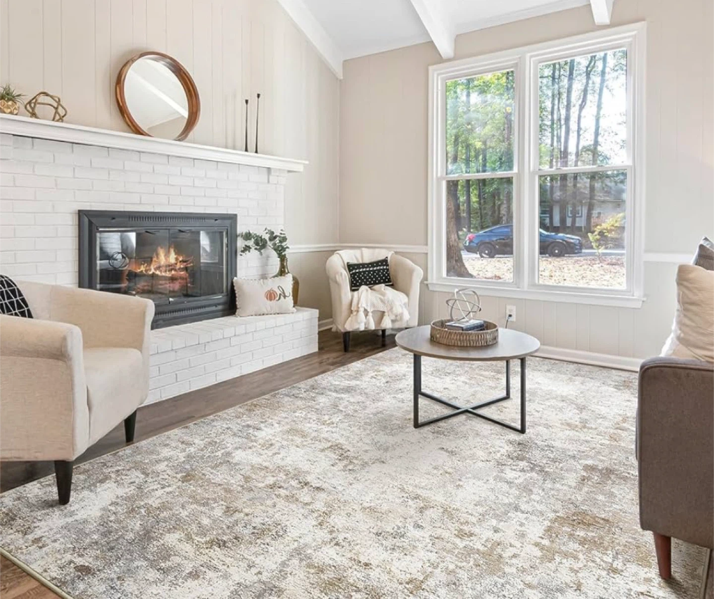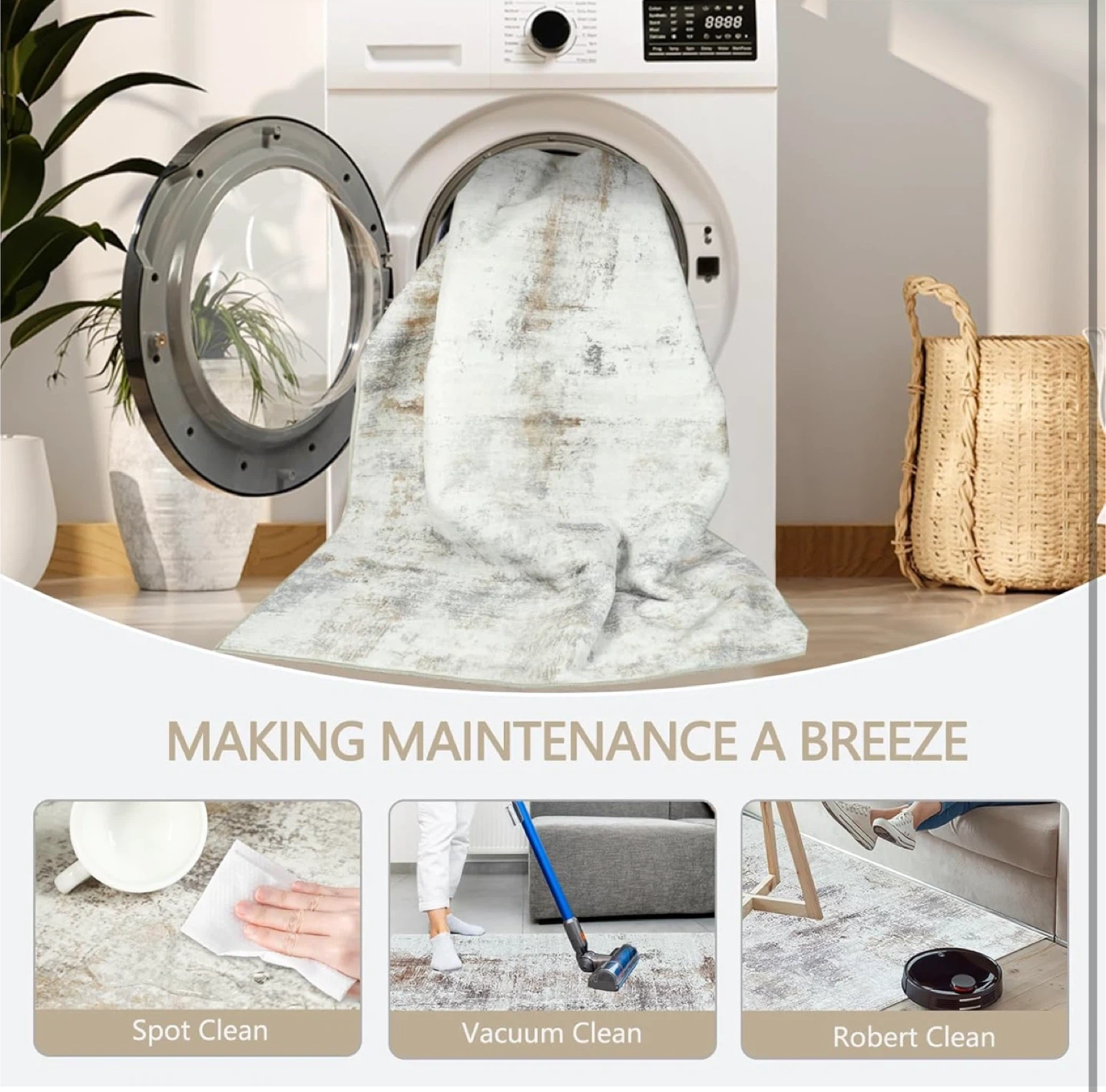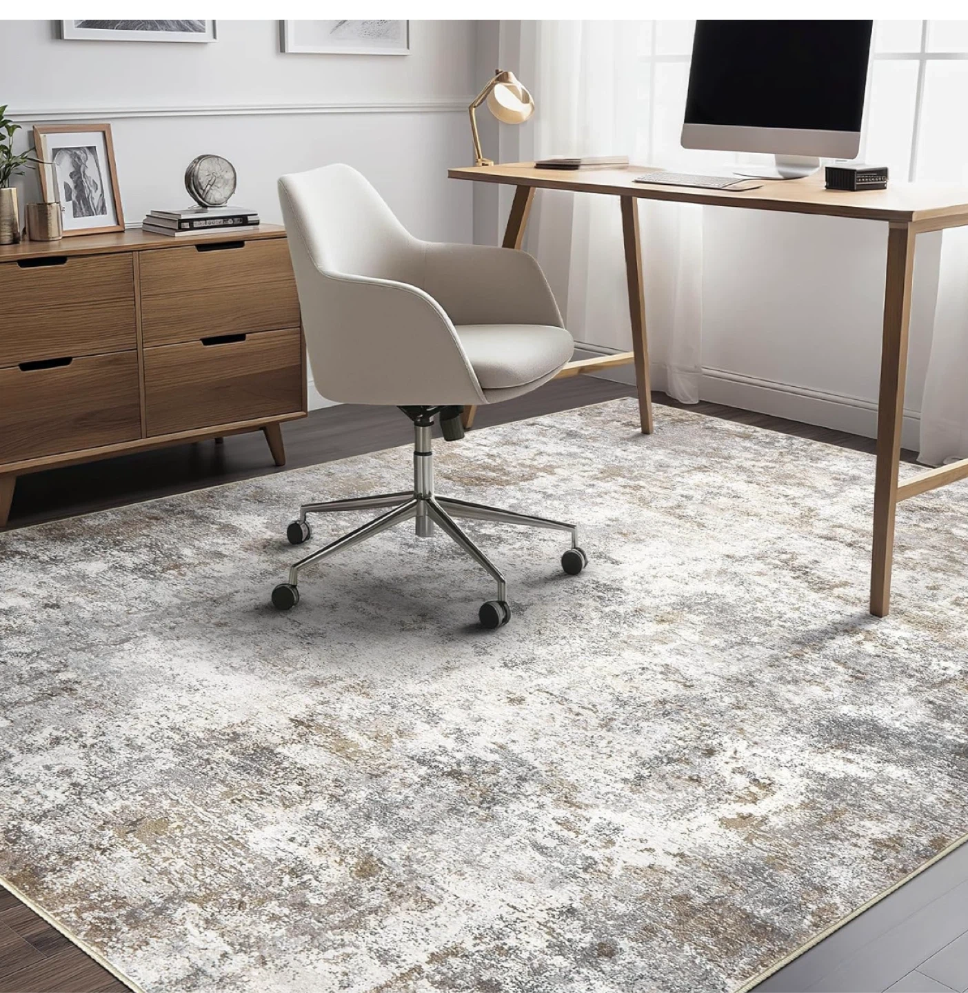 Add a touch of modern elegance to your home with this beautiful area rug! The neutral beige and grey abstract pattern will complement any decor. It's perfect for living rooms, dining rooms, or bedrooms. It's easy to maintain, spot clean, vacuum clean, or even use a robot vacuum on it