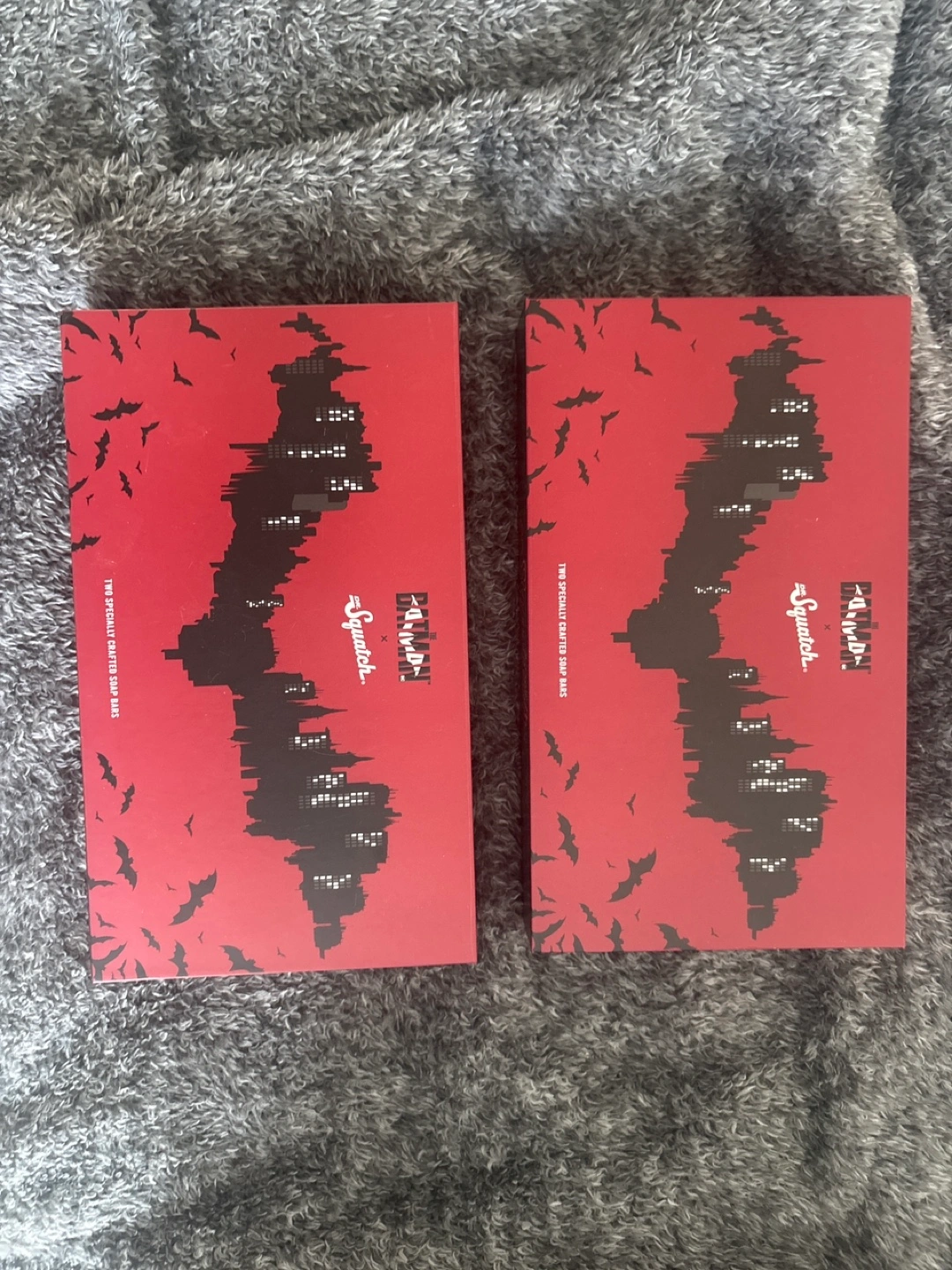 Selling a set of two specially crafted soap bars from the Batman x Squatch collaboration!