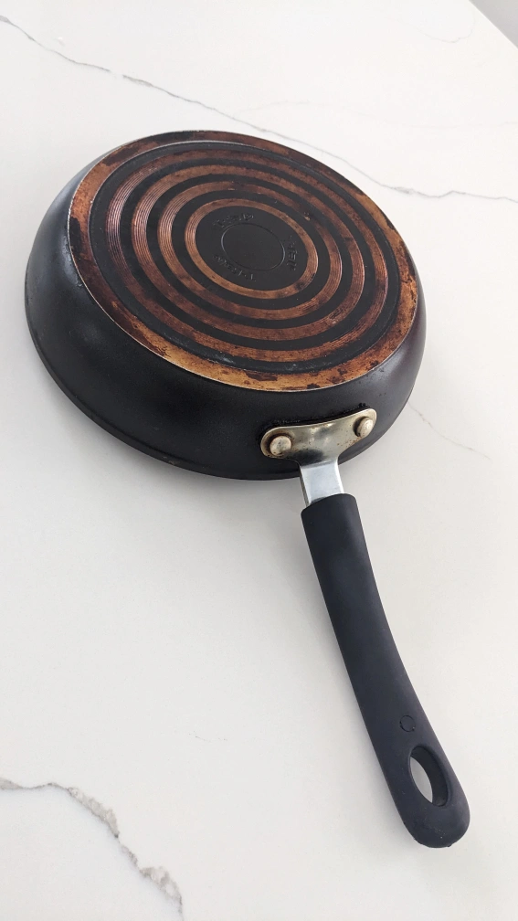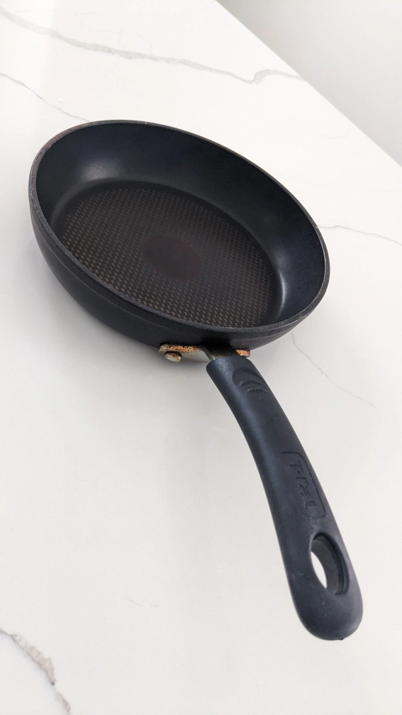 Well used black frying pan from T-fal. It has some signs of wear, as you can see in the photos, but it's still perfectly functional for cooking up your favourite meals. It's a great addition to any kitchen!