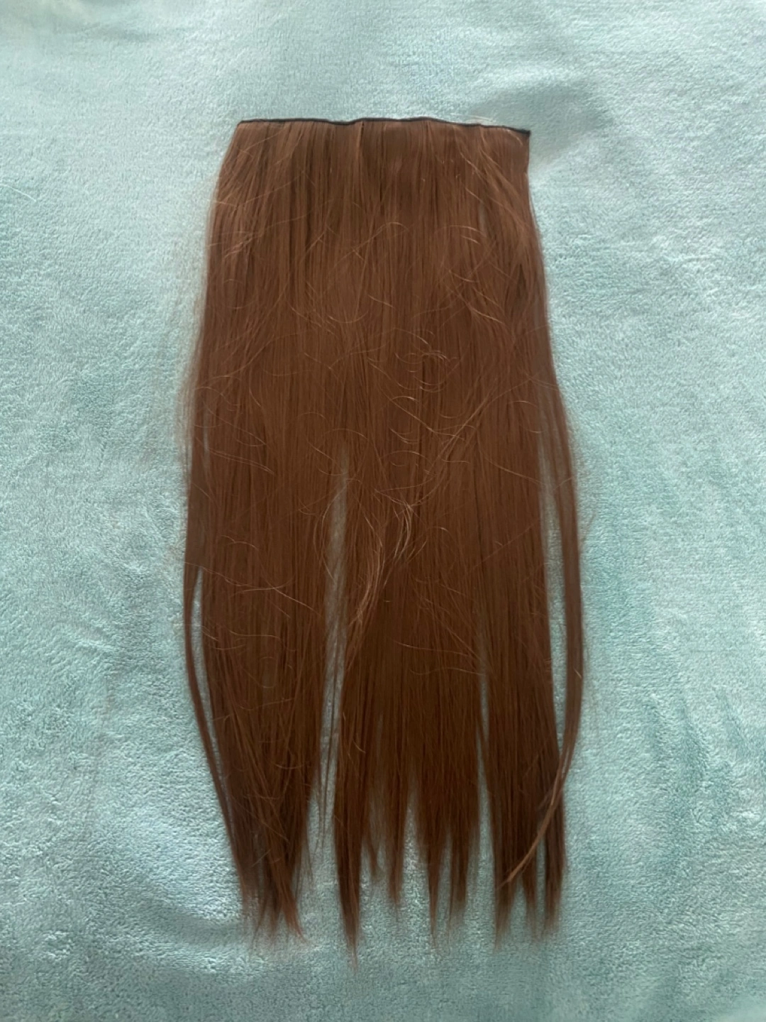 Selling a brown clip-in hair extension. Premium synthetic, soft and straight. It’s new and ready to add some length or volume to your hair! It's a simple way to change up your look without any permanent commitment