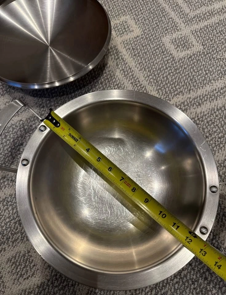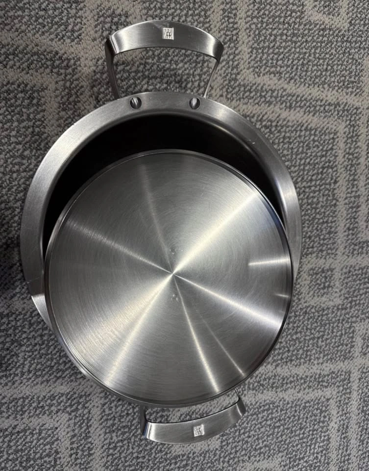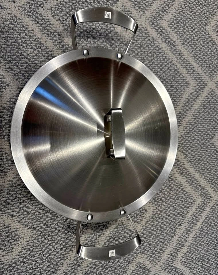This is a Zwilling J.A. Henckels pot and lid, perfect for cooking up a storm in the kitchen, with a 9.5 inch diameter and 4.5 inch height. The pot is made of high-quality stainless steel for even heating and durability. Good condition, rare used, like new.