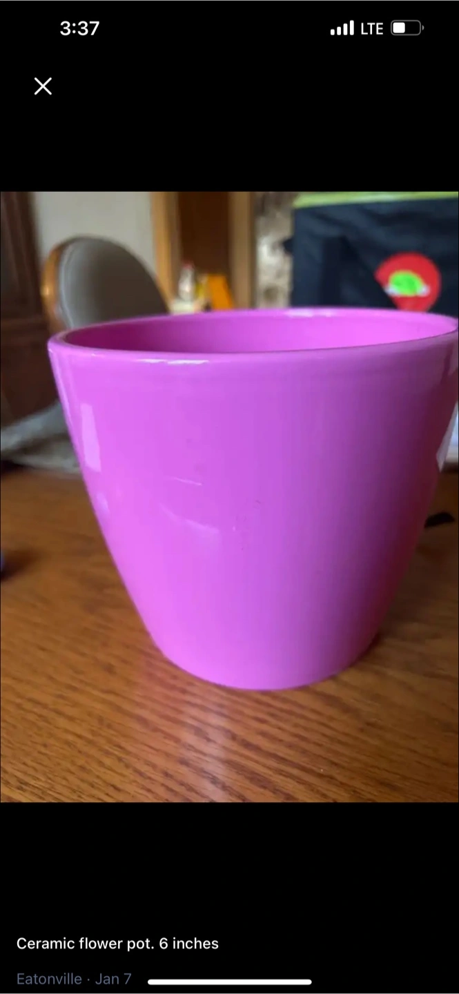 Selling a cute ceramic flower pot that's about 6 inches in size! It's a lovely shade of pink and would look great with any plant No cracks or damage to pot Will accept cash or e transfer Will do contactless pick up