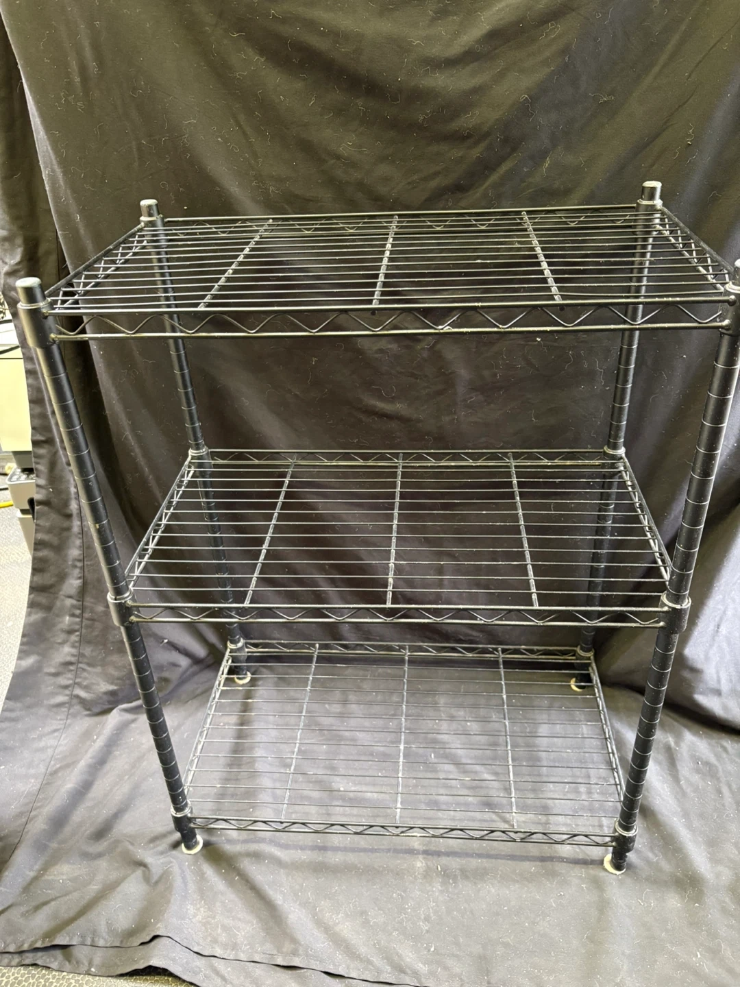 Good used condition Black Wire Shelving Unit - 3 Tier Selling a handy 3-tier wire shelving unit in black! It's perfect for adding some extra storage to your home, garage, or anywhere you need a little more organization. The unit is sturdy and in great shape, ready to help you declutter and keep things tidy $10 (Measurements in last couple of pics) Pick up Victoria Park & O’Connor area