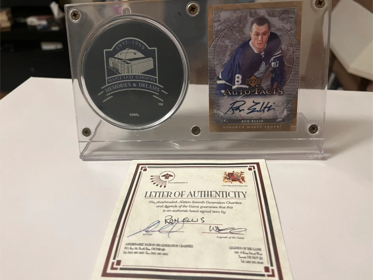 Lindsay’s own Ron Ellis autographed card and puck set.