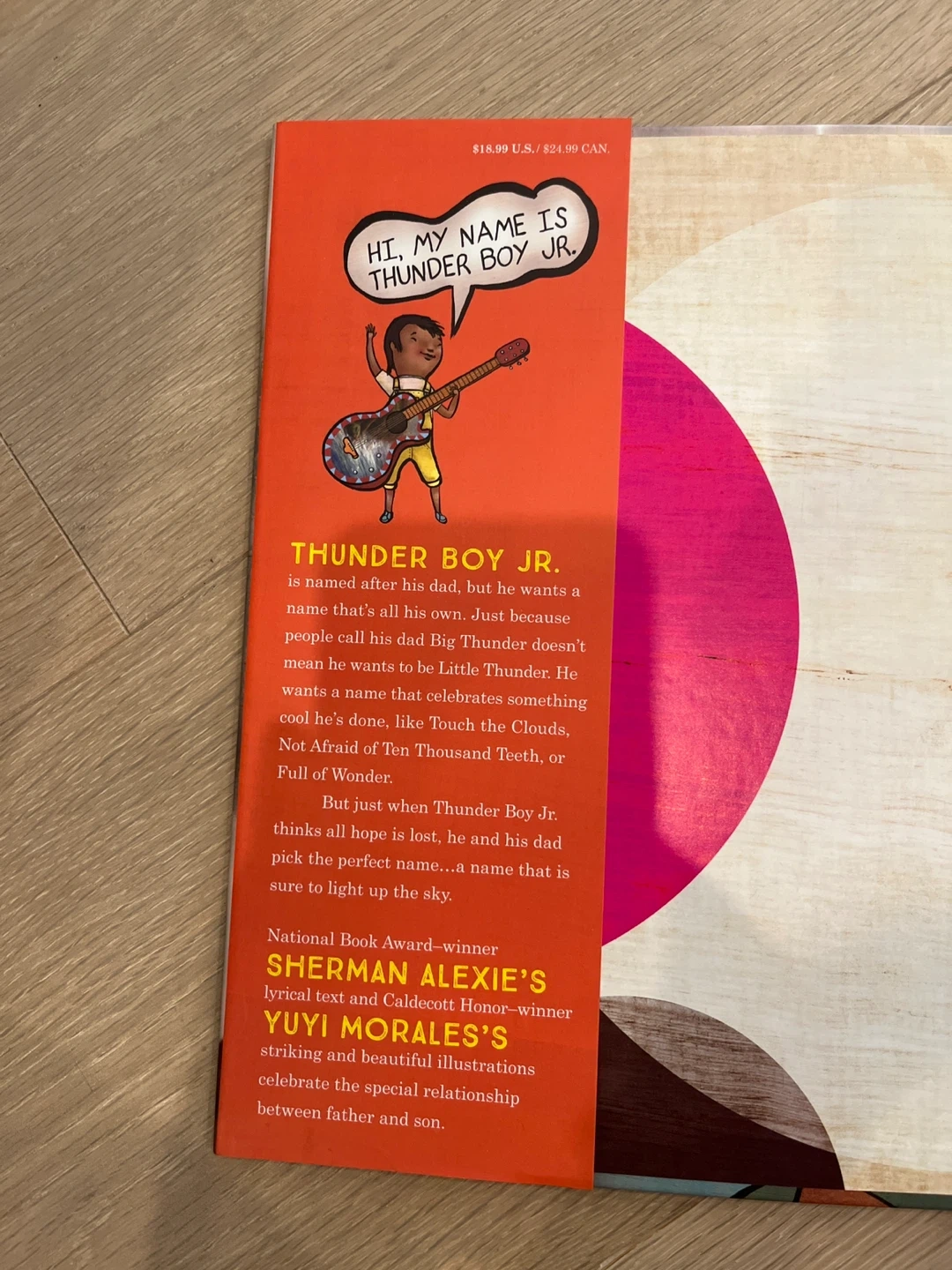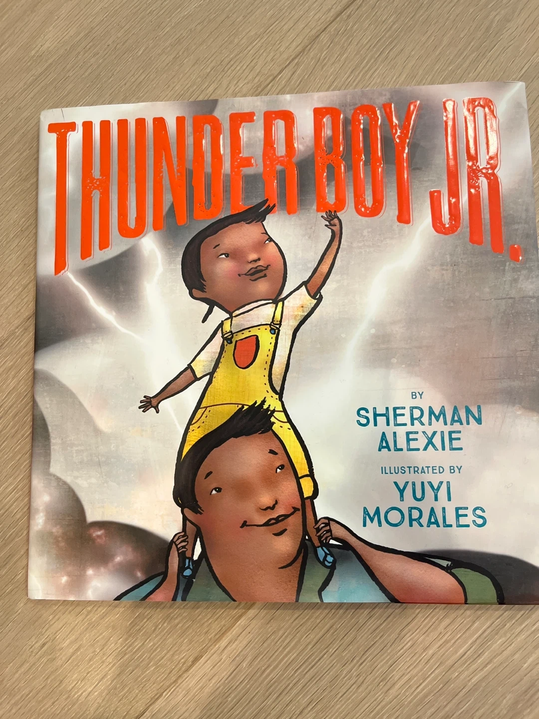 Selling the book Thunder Boy Jr. by Sherman Alexie and illustrated by Yuyi Morales! It's a heartwarming story about identity and family. Perfect for kids!