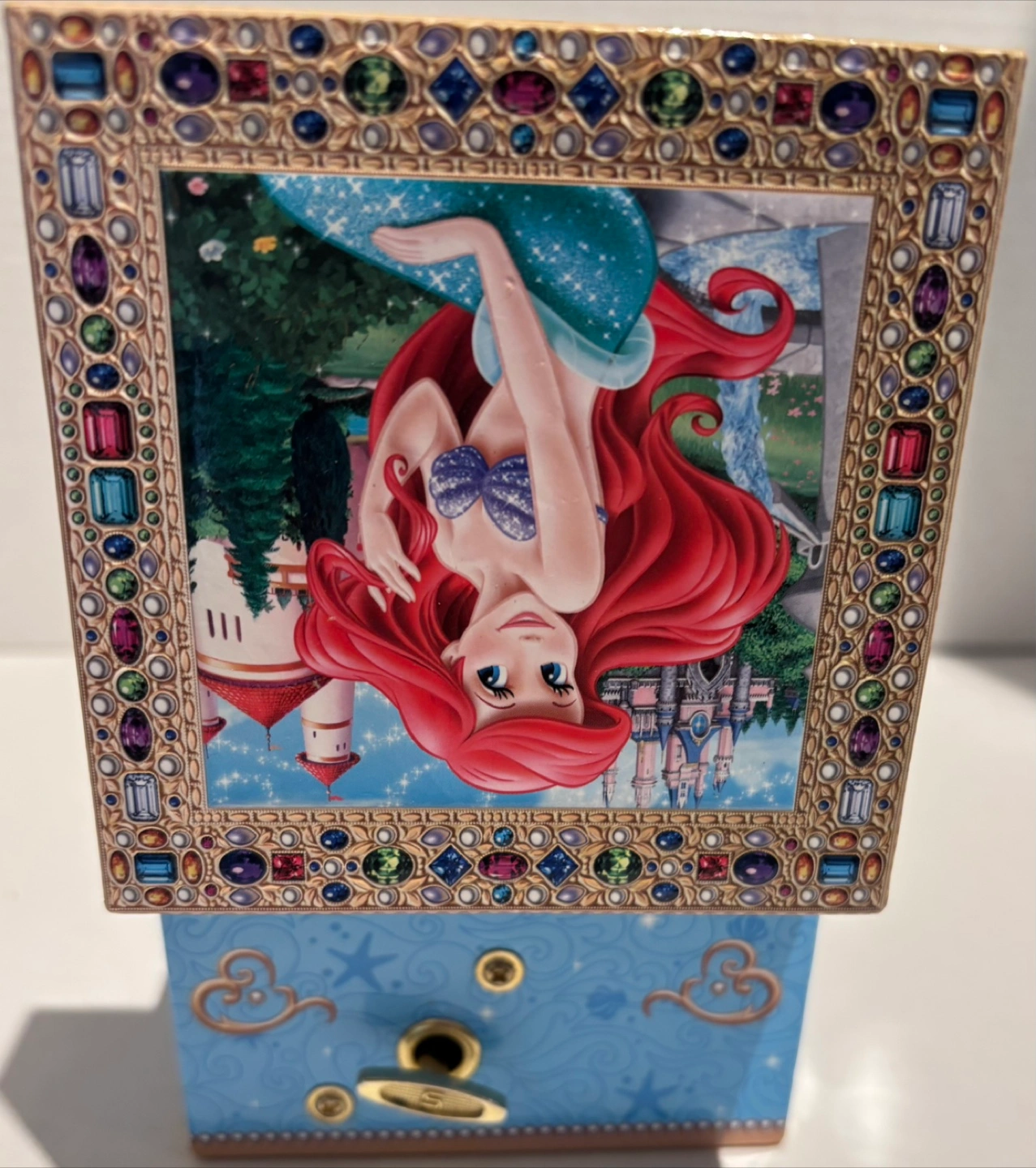 A charming music box featuring Disney's Little Mermaid. It's in great condition and plays a lovely tune. Perfect for any Disney fan or collector!