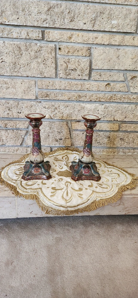 Asian style candle Holder Selling a pair of decorative candlestick holders. They have a unique design with floral and grape detailing.