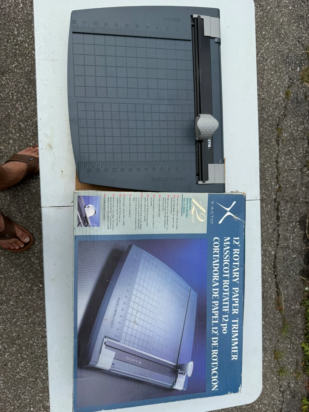 Selling a gently used X-Acto 12" rotary paper trimmer. It's in great shape and comes with the original box. Perfect for crafting or office use! The model name is Massicot Rotatif 12 po.