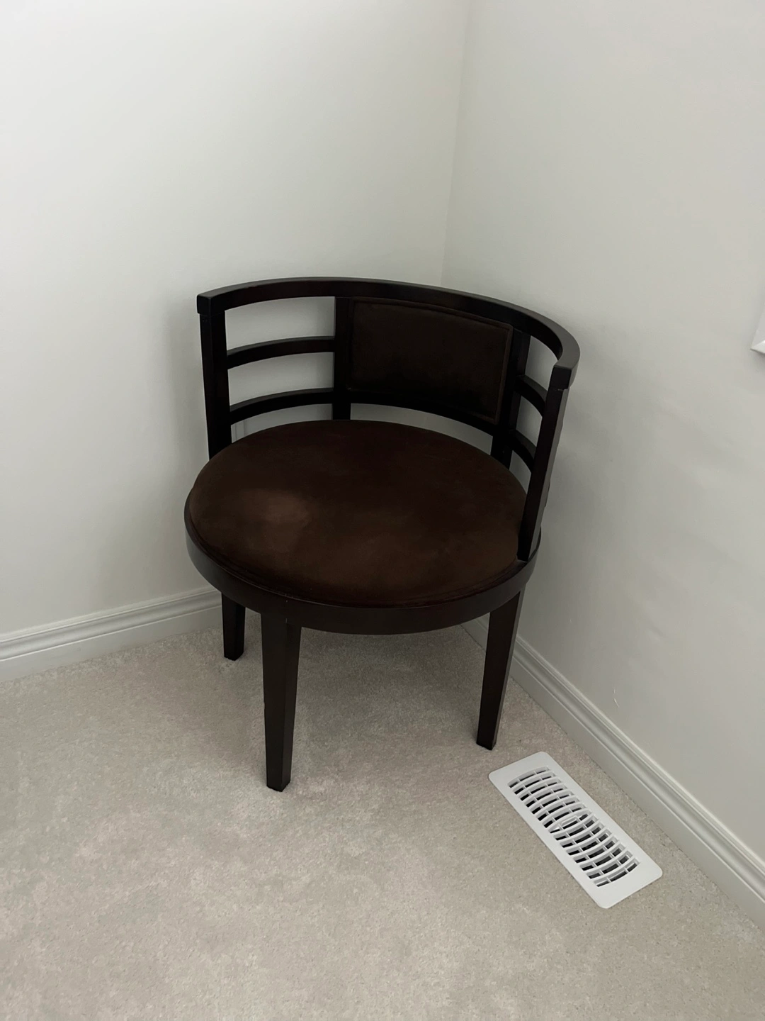 Selling a cute brown swivel chair! It's in great shape and would be perfect for a small space or as an accent piece. The dark brown colour is really versatile and would fit in with most decor styles