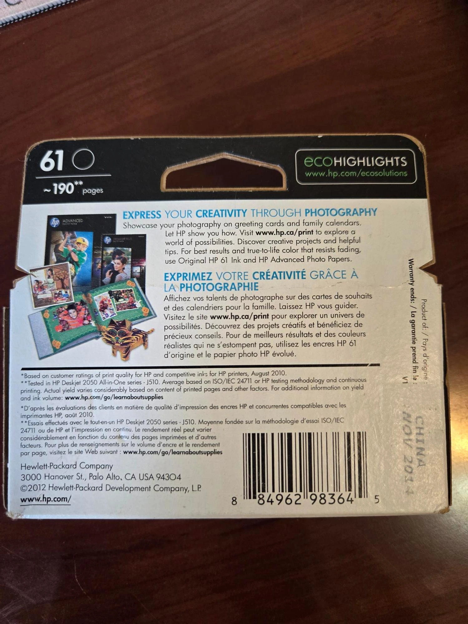 HP #61 black printer ink. Package is unopened but this ink is old. Warranty ended November 2014, so that gives you an idea of how old it is. I can not guarantee the ink is good, which is why I'm giving it away for free.