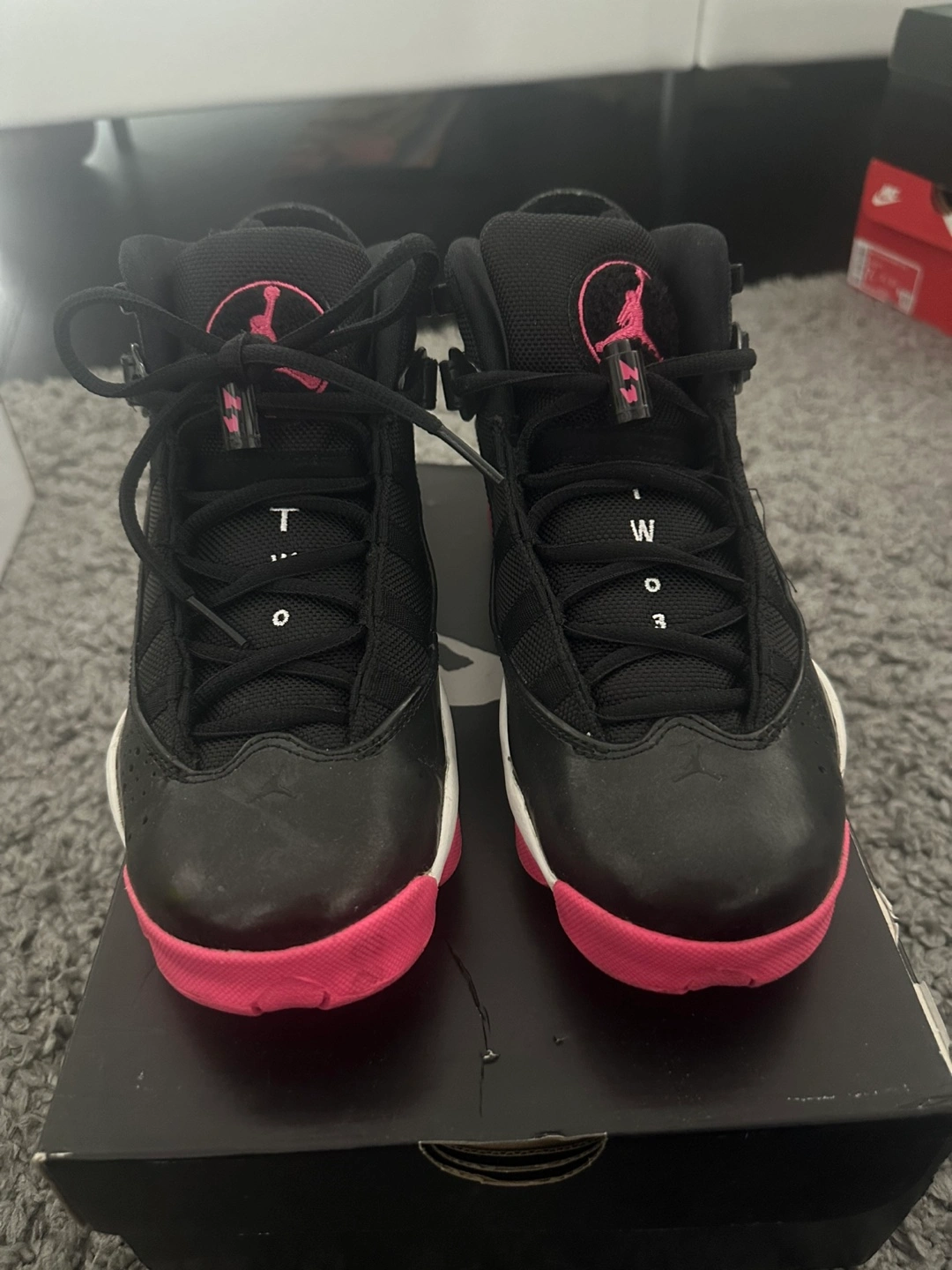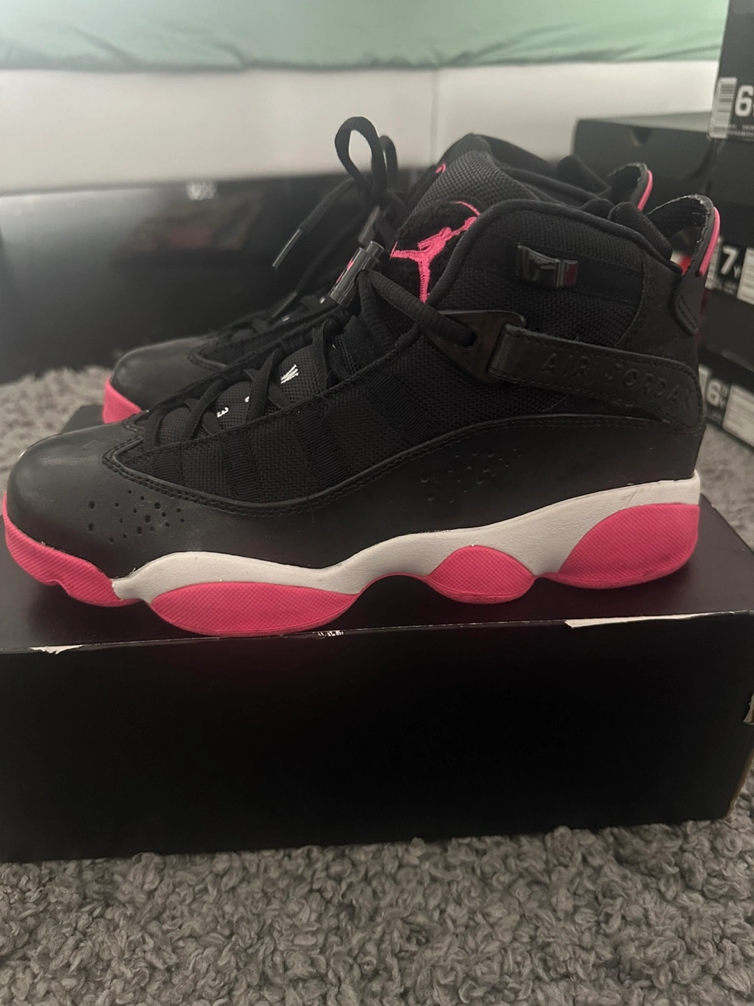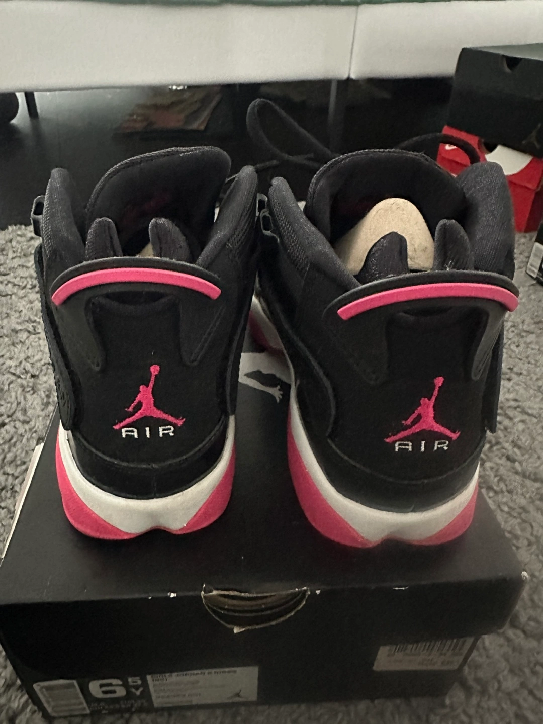 Black and Pink Jordan 6 rings for sale Size 6.5Y = 8 women’s Worn only once Comes with original box Asking $100