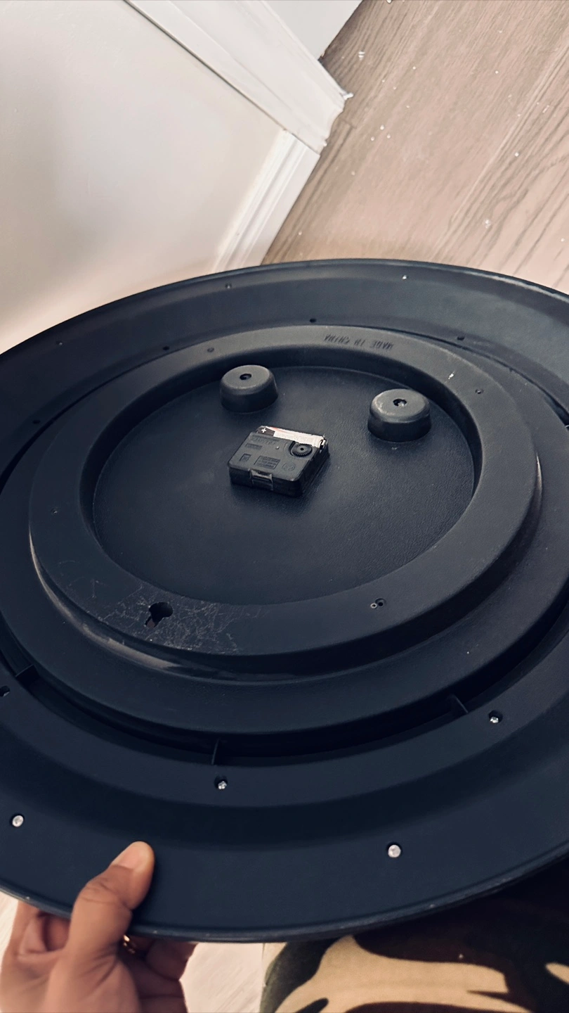 Selling a large decorative wall clock! It features a classic design with Roman numerals and a vintage postcard-style face. It's perfect for adding a touch of elegance to any room. The clock has a black frame and is in great condition!