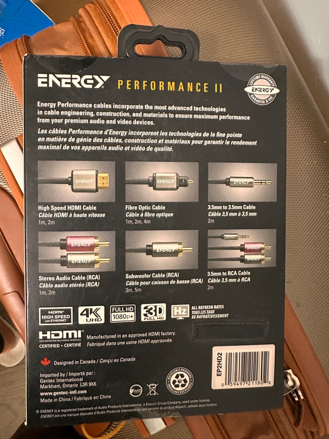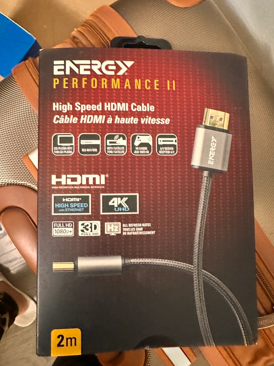 Selling a brand new Energy Performance II High Speed HDMI Cable. It's 2 meters long and supports 4K UHD and full HD 1080p+ resolution. Perfect for connecting your devices with high-speed performance! The box is included
