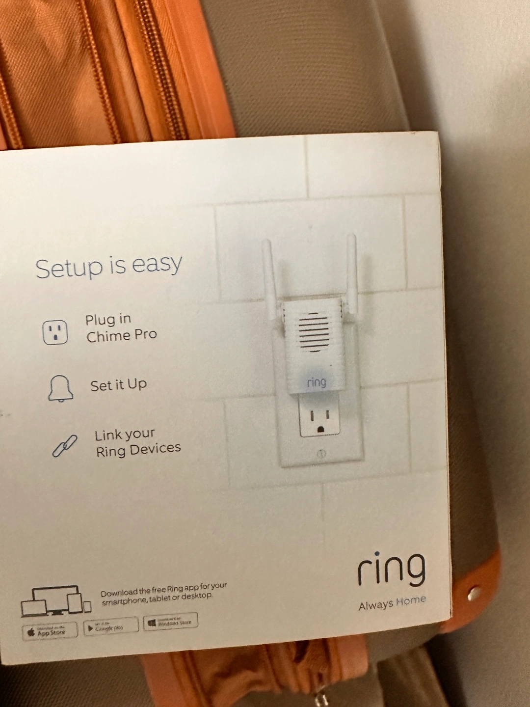 Selling a Ring Chime Pro, a Wi-Fi extender and chime for your Ring devices! It extends Wi-Fi to boost your Ring devices' connectivity. It also features multiple alert tones and a do-not-disturb mode. Setup is easy, just plug it in!