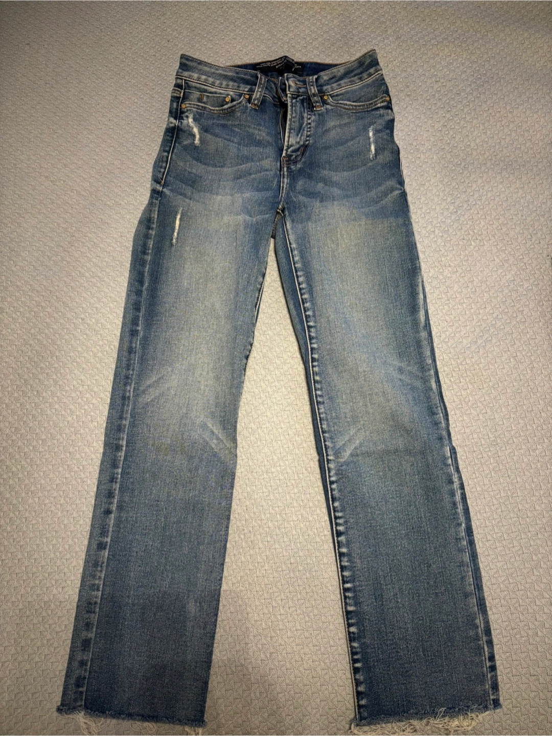 Selling a pair of jeans in a size 24. They're in good condition with a stylish, slightly distressed look. Perfect for casual wear!