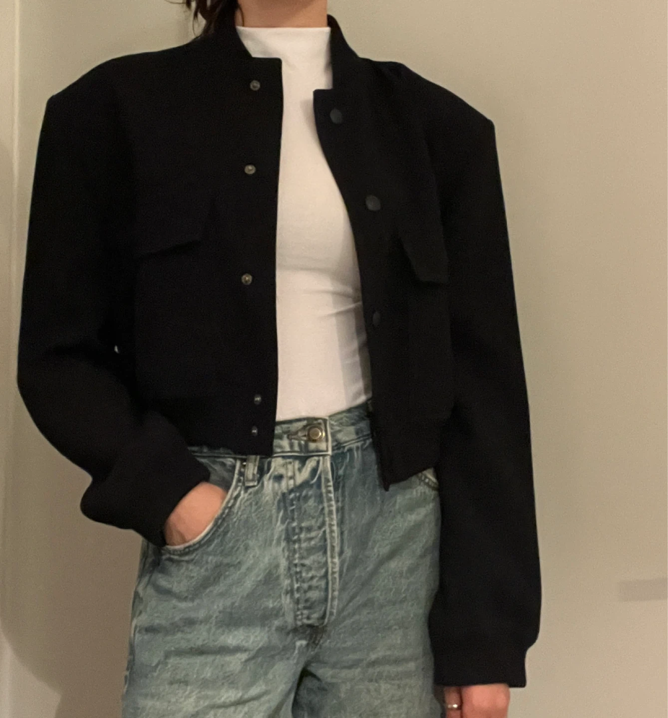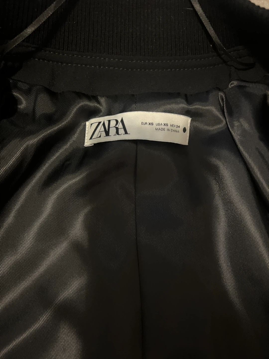 Selling a Zara bomber jacket in black, size XS fits xs-s. It's in great condition and ready for a new home. Perfect for layering or wearing on its own! Worn only once