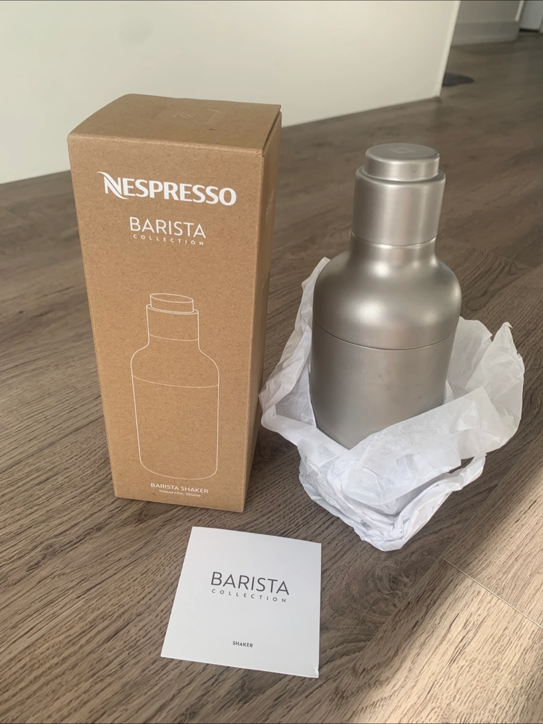 Selling a Nespresso Barista Collection Shaker, still brand new in its box! It's a sleek silver colour, perfect for making your favourite Nespresso coffee recipes at home. The box and instructions are included