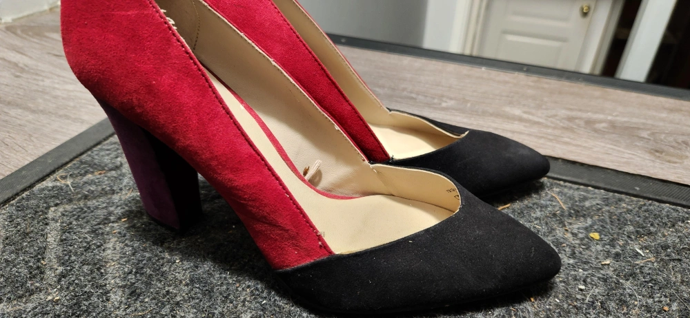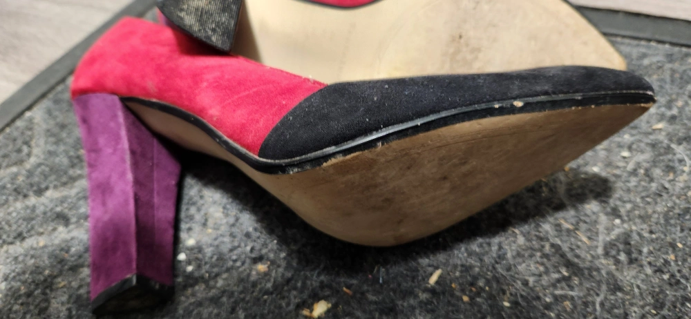 Stylish Torrid heels in a striking colour block design! These size 12 heels feature a combination of red, black, and purple, making them a unique addition to your wardrobe. Perfect for adding a pop of colour to any outfit