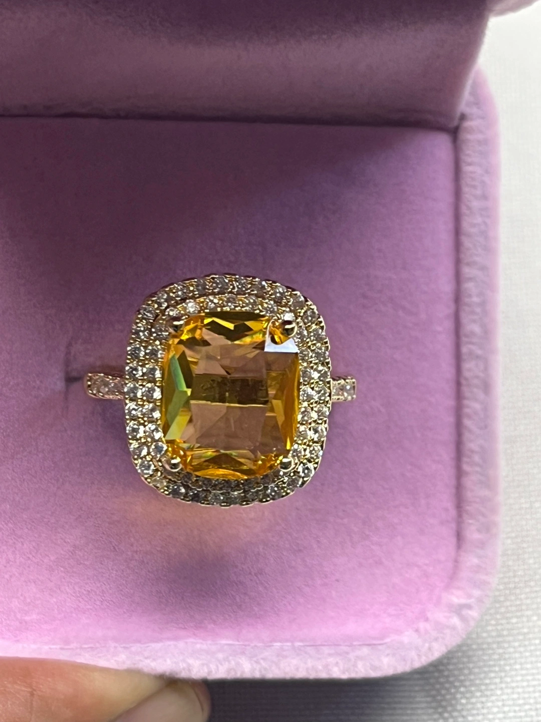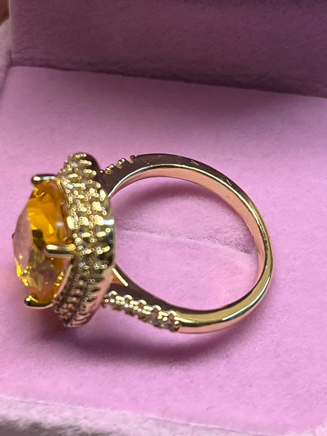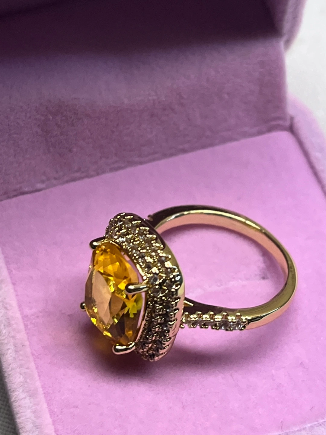 Luxury citrine with beautifully studded 2 rows of sapphire gold filled ring Size : 7 and 8 It’s gold filled…, not plated Please check my other listings for more variety 😊 Pick up and shipping available No delivery Shipping is available for extra $$