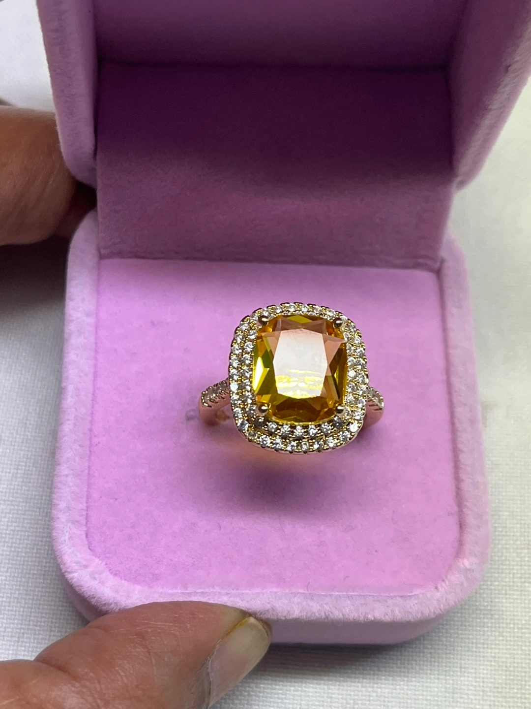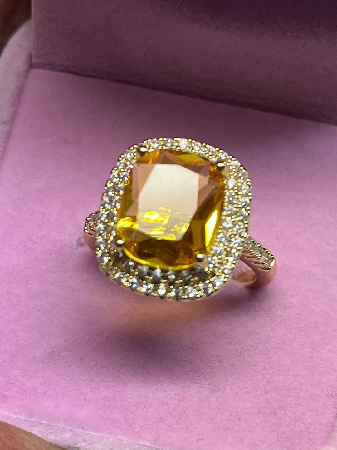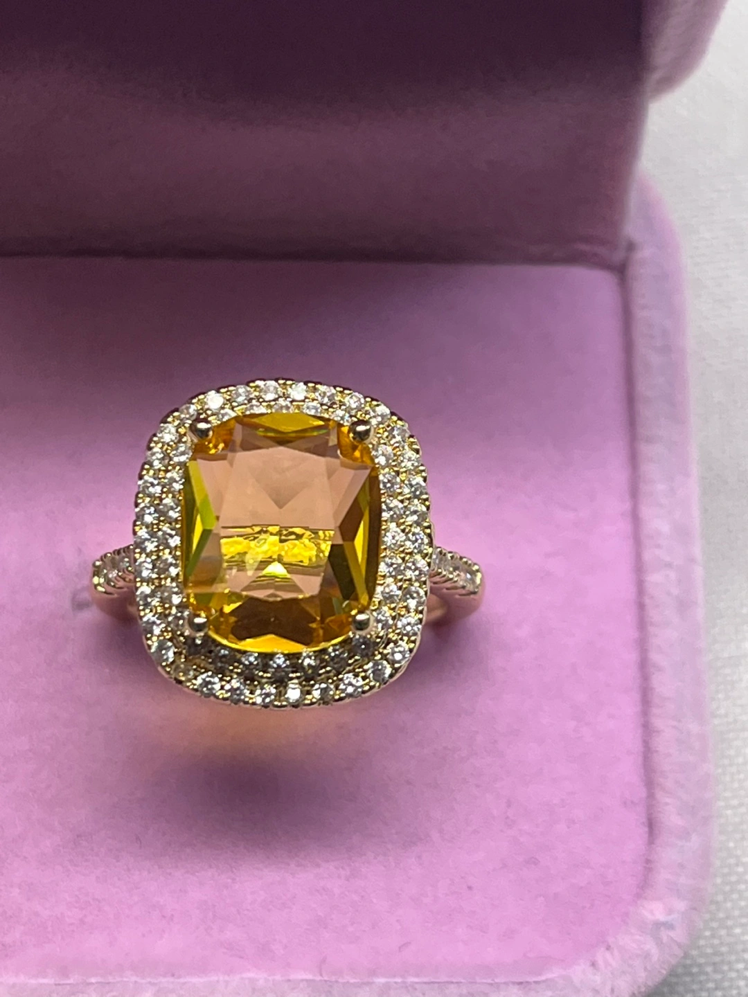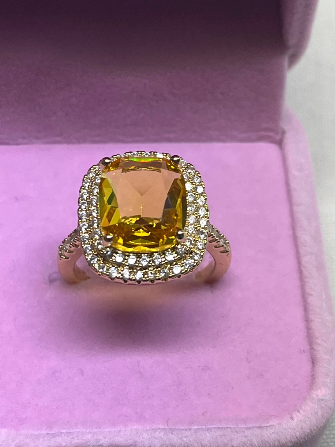 Luxury citrine with beautifully studded 2 rows of sapphire gold filled ring Size : 7 and 8 It’s gold filled…, not plated Please check my other listings for more variety 😊 Pick up and shipping available No delivery Shipping is available for extra $$