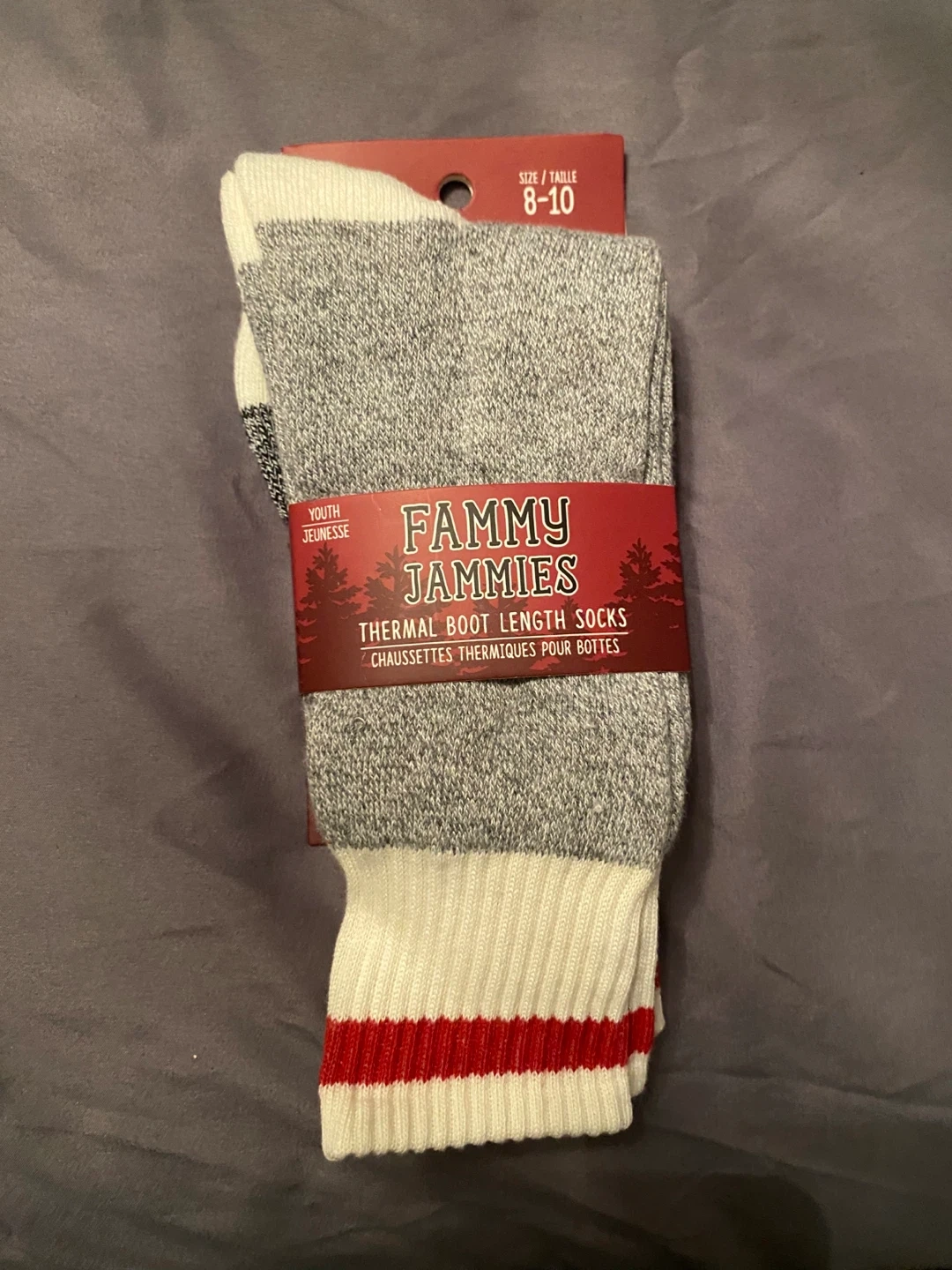 Keep your little one's feet warm with these Fammy Jammies youth thermal boot length socks! They're perfect for outdoor adventures, featuring a thermal interior and moisture-wicking technology. The socks are size 8-10 and designed to fit shoe sizes 3-6.