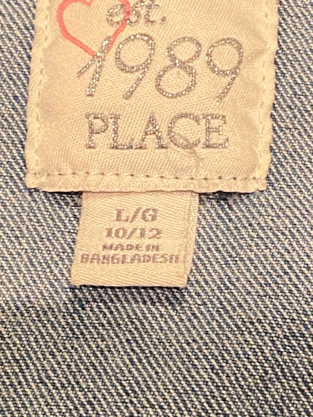Here's a cute denim jacket from The Children's Place! It's in great condition and perfect for layering. The size is a large (10/12).
