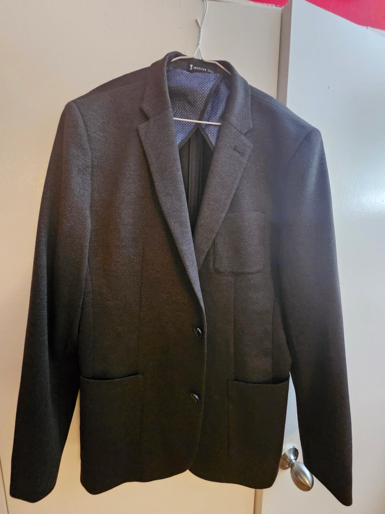 Selling NEW American Tall blazer in size large-xlarge. It's a stylish piece that's perfect for adding a touch of class to your wardrobe. The blazer features a sleek design and a comfortable fit, ideal for taller individuals. It is in great condition! Price 50$ Only Cash