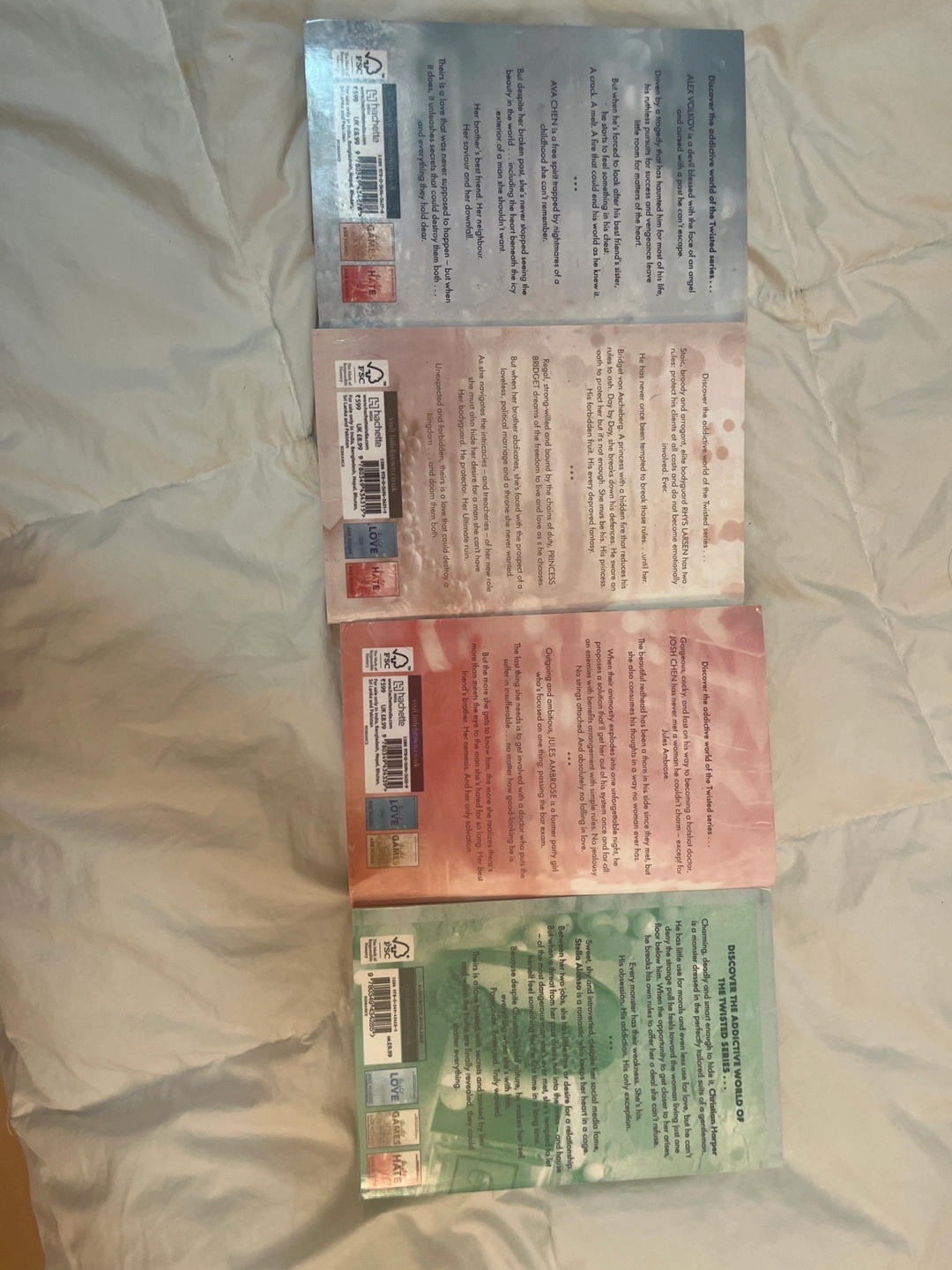 Whole set of the Twisted Series first 2 were read but in great condition. Last 2 weren’t read. Trying to sell fast! Cash preferred! Selling the complete Twisted series box set by Ana Huang! Includes all four books: Twisted Love, Twisted Games, Twisted Hate, and Twisted Lies. The books are in great condition and come in the original box. Perfect for anyone who loves a good romance series!