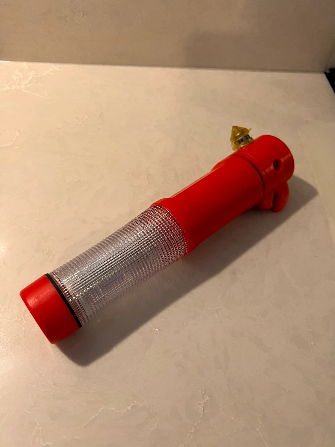 1 Magnetized end for use under car hoods and working in the dark, emergencies, etc. 1 Compact blade for cutting small wires, seatbelts, etc. 1 Glass breaker for emergencies i.e. car accidents 1 Flashing beacon and 1 flashlight $60 OBO make me an offer Pick up or meet up Cash only Near 128 and 64 avenue