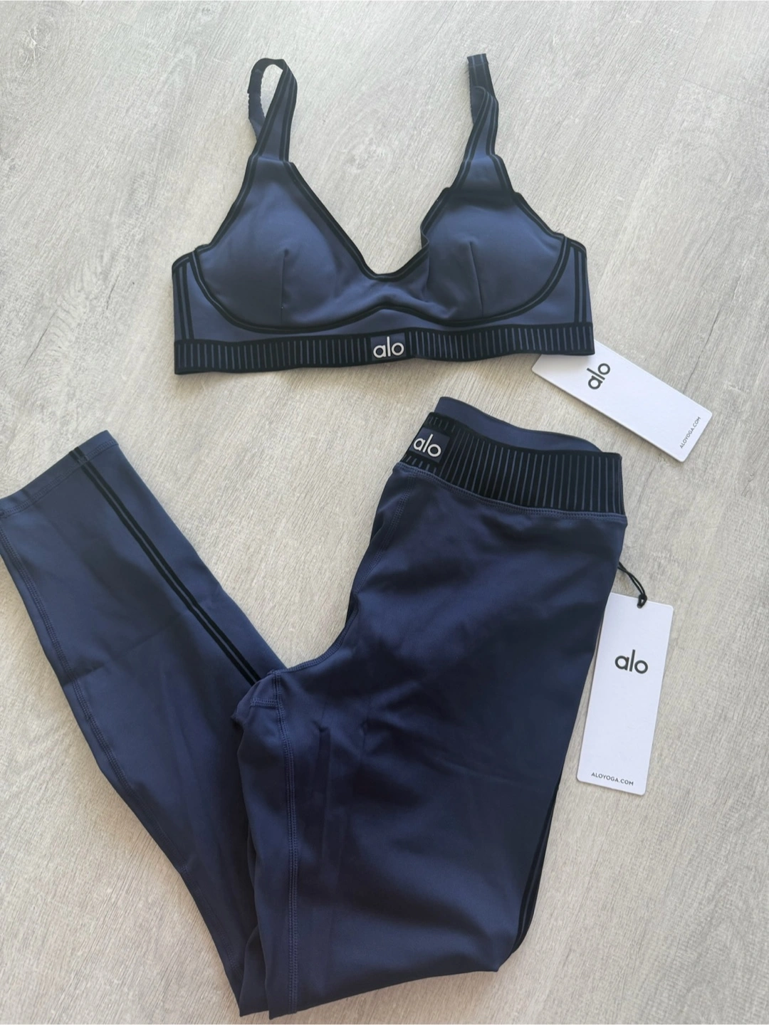 Selling an ALO activewear set, including the Airlift Line Up Bra and matching leggings. The set is brand new and authentic with tags. The bra originally retails for $118 and the leggings for $178. Available in small size. Perfect for yoga or your favourite workout! ๐ Message me for pick-up address and shipping options. โ ๏ธ Prices are firm and in cash, all in final sale.