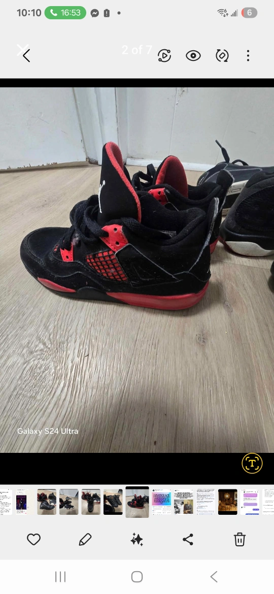 Selling a pair of Jordan 4 Retro sneakers in black and red. They're in good condition kids sze 2.5
