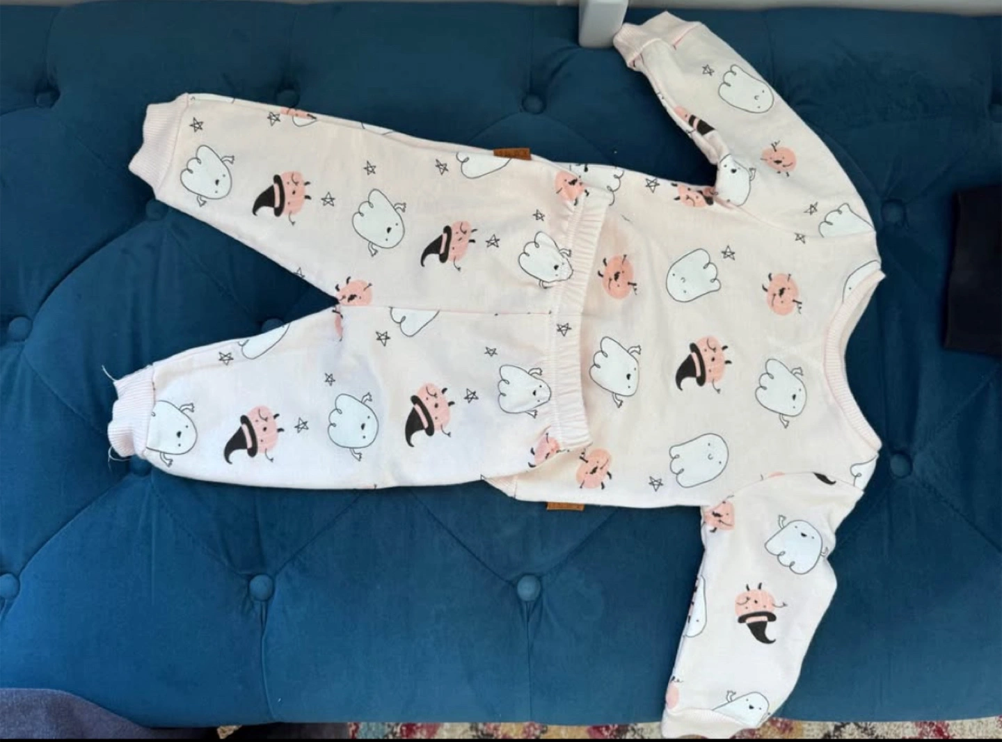 Here's a sweet little pajama set for your baby! It features a cute pattern with clouds and ice cream cones. Perfect for cozy nights and sweet dreams