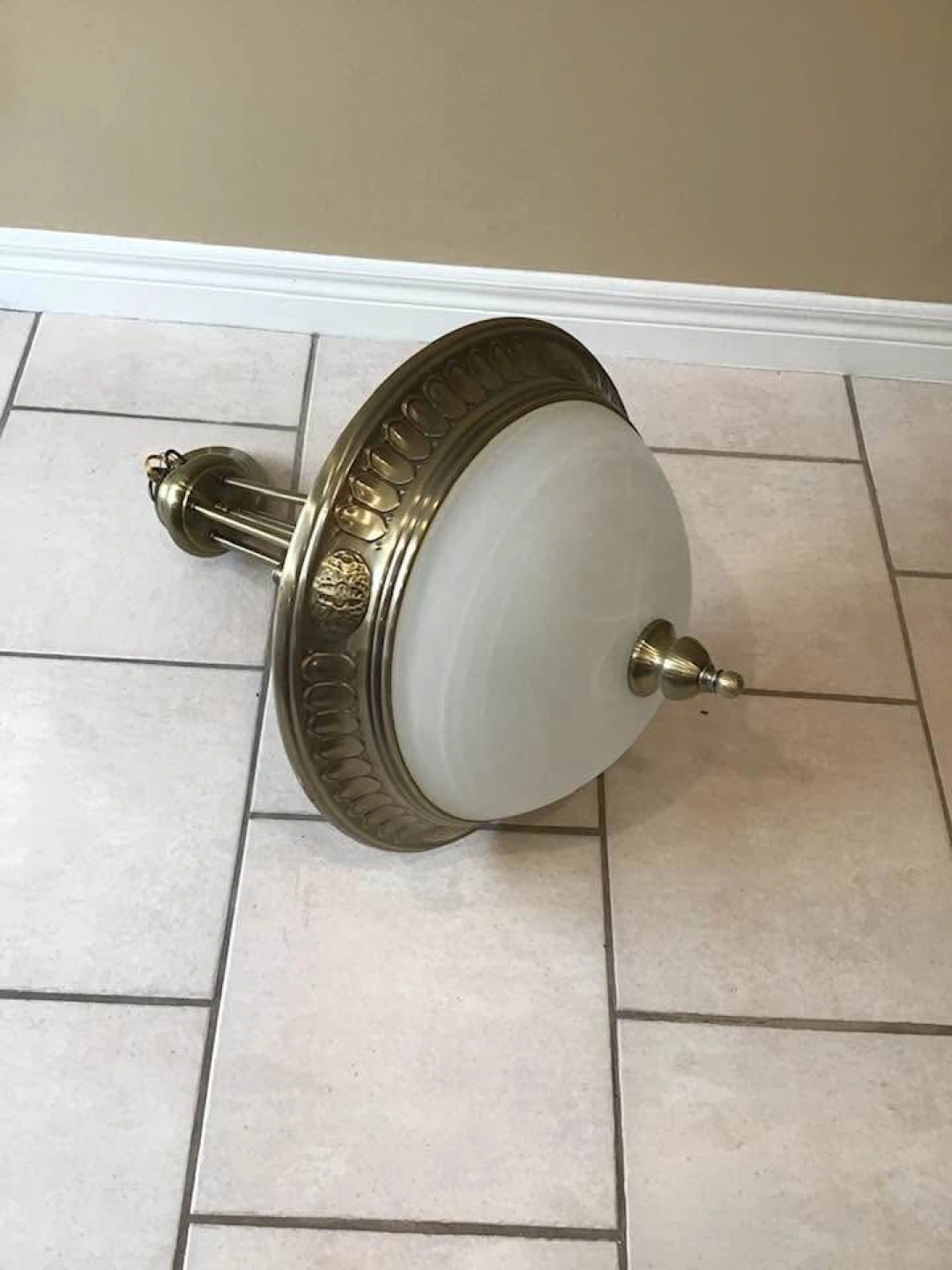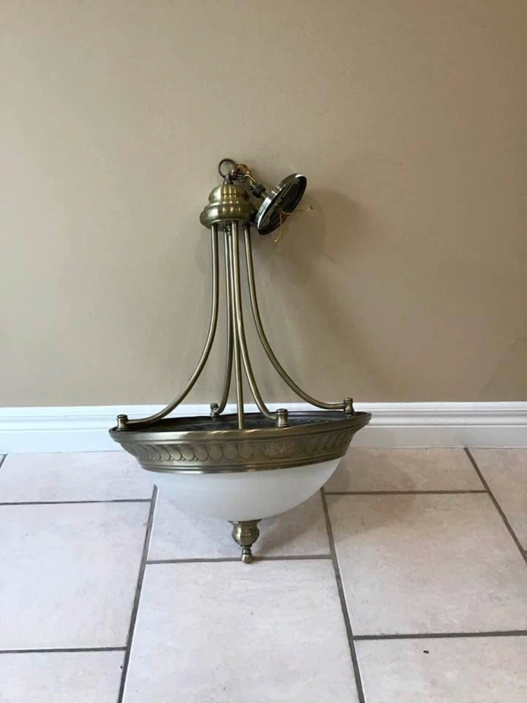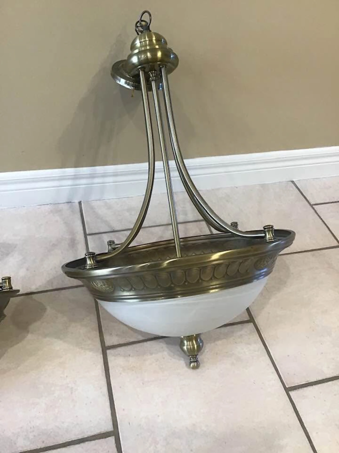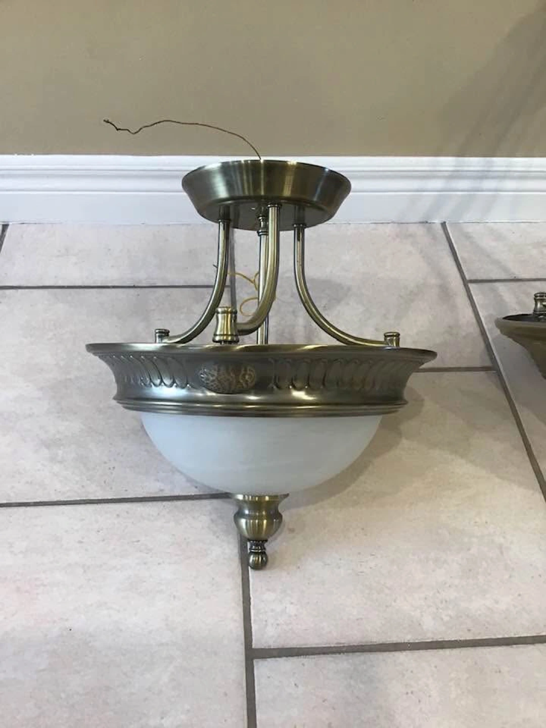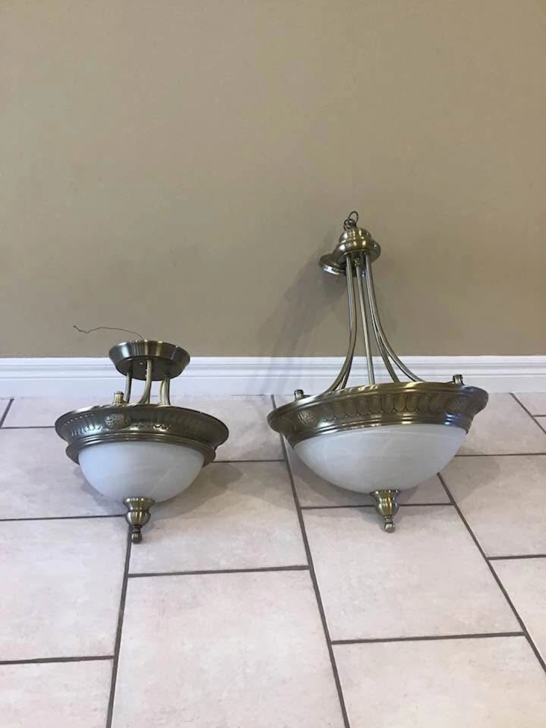 Selling Two hanging ceiling light fixtures. They have a decorative bronze finish and a frosted glass shade. Perfect for adding a touch of elegance to any room! Like new condition $15 each Pick up Rogers rd and old Weston rd area Please check my other listings.Thanks