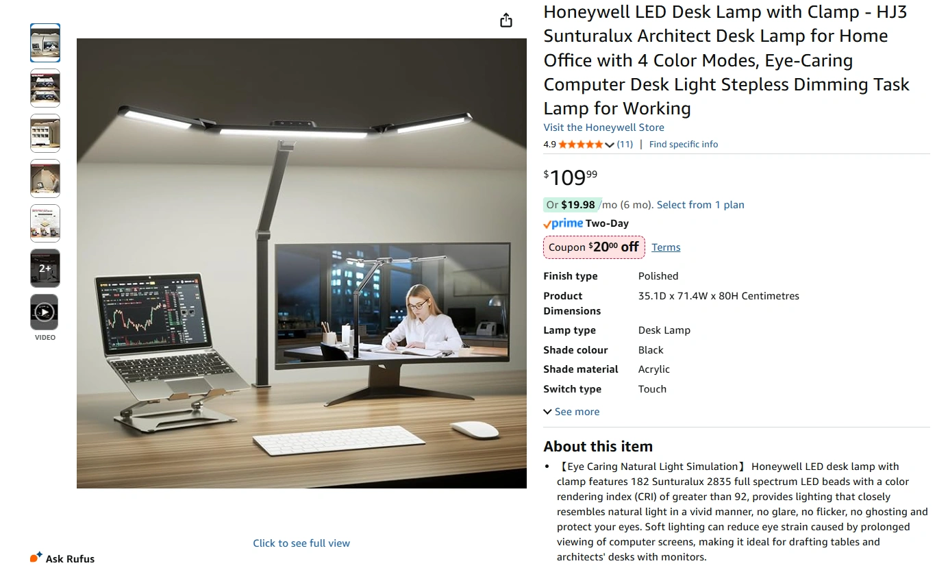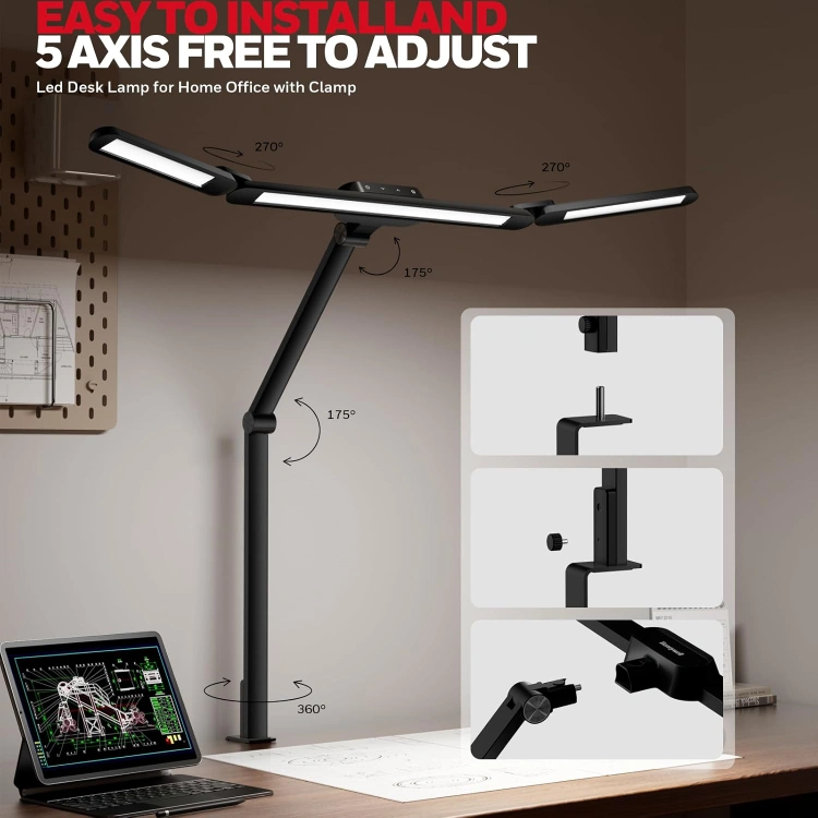 Honeywell LED Desk Lamp with Clamp - HJ3 Sunturalux Architect Desk Lamp for Home Office with 4 Color Modes, Eye-Caring Computer Desk Light Stepless Dimming Task Lamp for Working, Brand New in the Box/Sealed Sells for $110+tax on Amazon https://www.amazon.ca/dp/B0F18KFJJ2 Features: 【Eye Caring Natural Light Simulation】 Honeywell LED desk lamp with clamp features 182 Sunturalux 2835 full spectrum LED beads with a color rendering index (CRI) of greater than 92, provides lighting that closely resembles natural light in a vivid manner, no glare, no flicker, no ghosting and protect your eyes. Soft lighting can reduce eye strain caused by prolonged viewing of computer screens, making it ideal for drafting tables and architects' desks with monitors. 【Architect Desk Lamp&Steples Dimming】Honeywell clamp desk lamp equipped with 3 ultra bright lights for a wider range of light, illuminates your entire desk. Turn them down to create a super bright lighting area for detail work. Smart touch panel, quickly adjust 4 color temperatures (3000K-5700K) and 5 brightness levels (10%-100%), equipped with memory function of this desk clamp lamp can remember the brightness you setting. 【Flexible Rotatable for Multi-Angle】The flexibility 800 lumen clamp desk lamp features a horizontal pivot axis and two vertical movable pivot axes, allow you to adjust the lamp neck and lamp head in multiple angle. Whether you require focused illumination for detailed tasks or wider light diffusion for detail task, this computer desk lamp provides the adaptability needed to meet your specific requirements. 【Space Saving Clamp Design】2.4 inch wide clamp securely attaches the desk lamp to the edge of the desk, saving you valuable desktop space and eliminating any restrictions, shockproof when you are working. It equipped with anti-slip pads for stability and reliability. A clean and organised desk surface, combined with bright, eye-friendly lighting, adds elegance and efficiency to your workflow. 【Versatile Lighting】 Honeywell clip on light RG0 certified reading lamp does not cause blue light, will not hurt your eyes. Easy to install, rugged design ensures long-lasting performance. The clamp part is easy to install It is ideal for tasks such as working from home, design drawing, carving, nail art, quilting, and diamond painting.