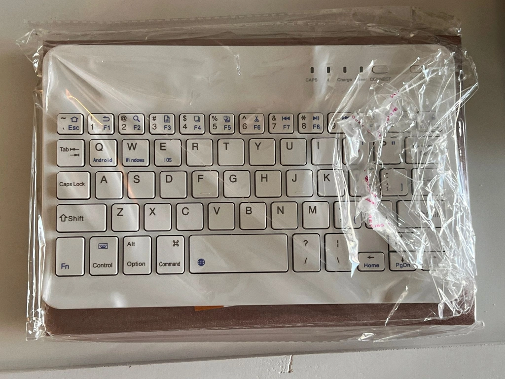 Selling a brand new Sengbirch Bluetooth keyboard case! It's still in its original packaging. The keyboard is 8 in x 10 in, white with a brown case. Perfect for tablets or phones!