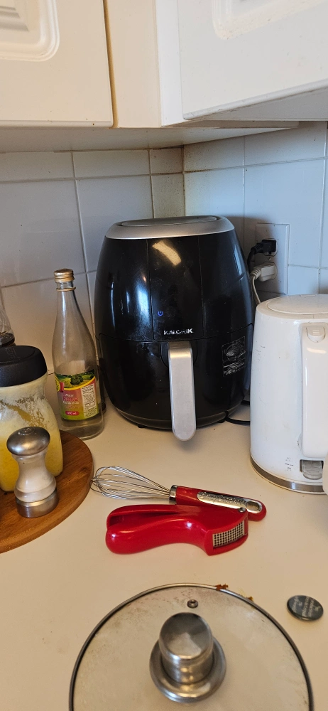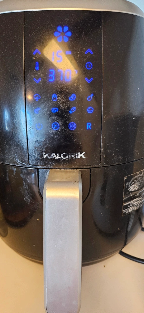 Selling a used Kalorik air fryer. It has a digital display and a silver handle. Great for cooking up your favourite snacks and meals!