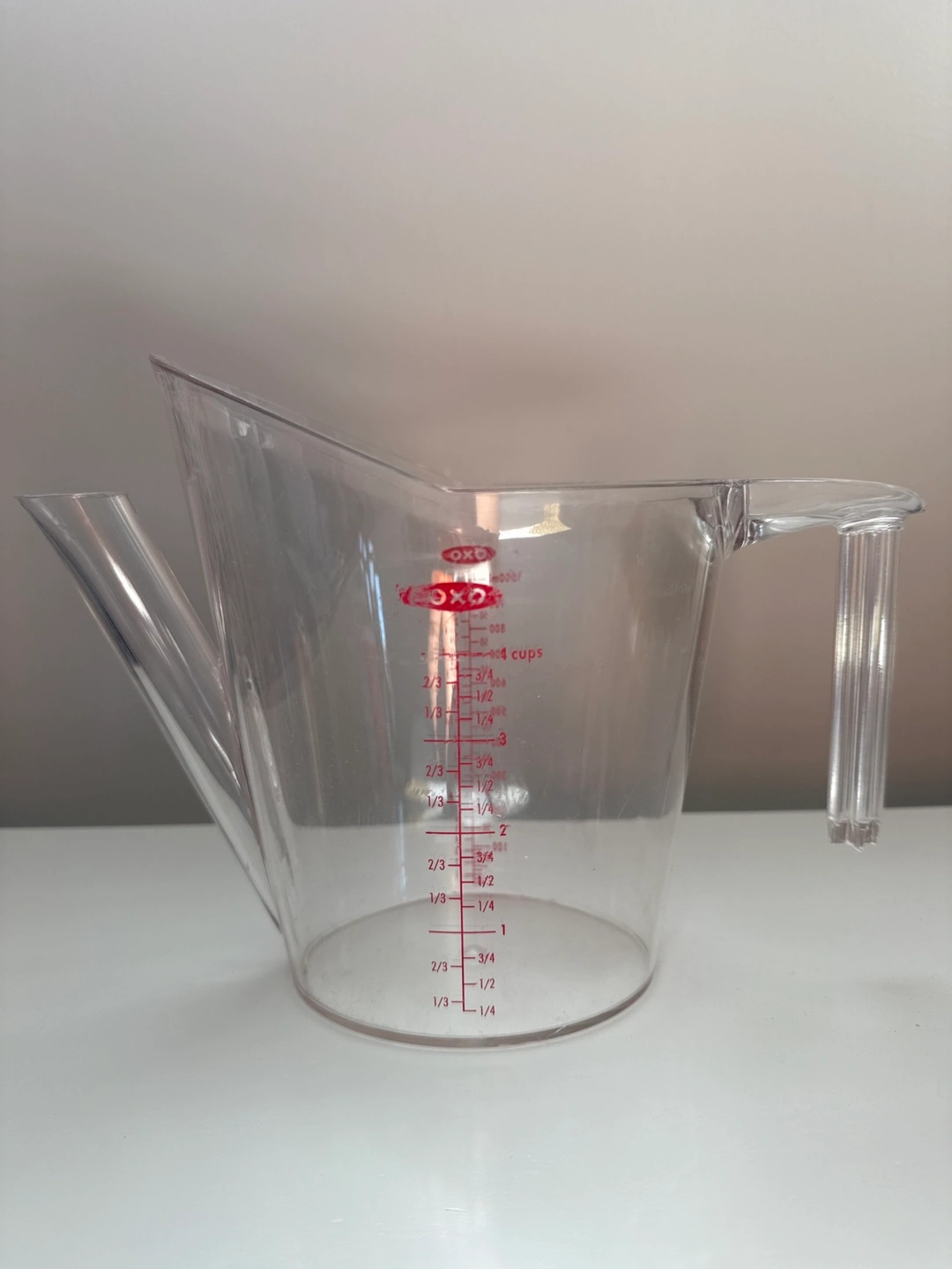 I'm giving away a OXO Good Grips 4-cup angled measuring cup. It's in great shape and ready for a new home! The angled design makes it easy to read measurements from above, so you don't have to bend down or lift the cup to eye level. Perfect for all your baking and cooking needs!