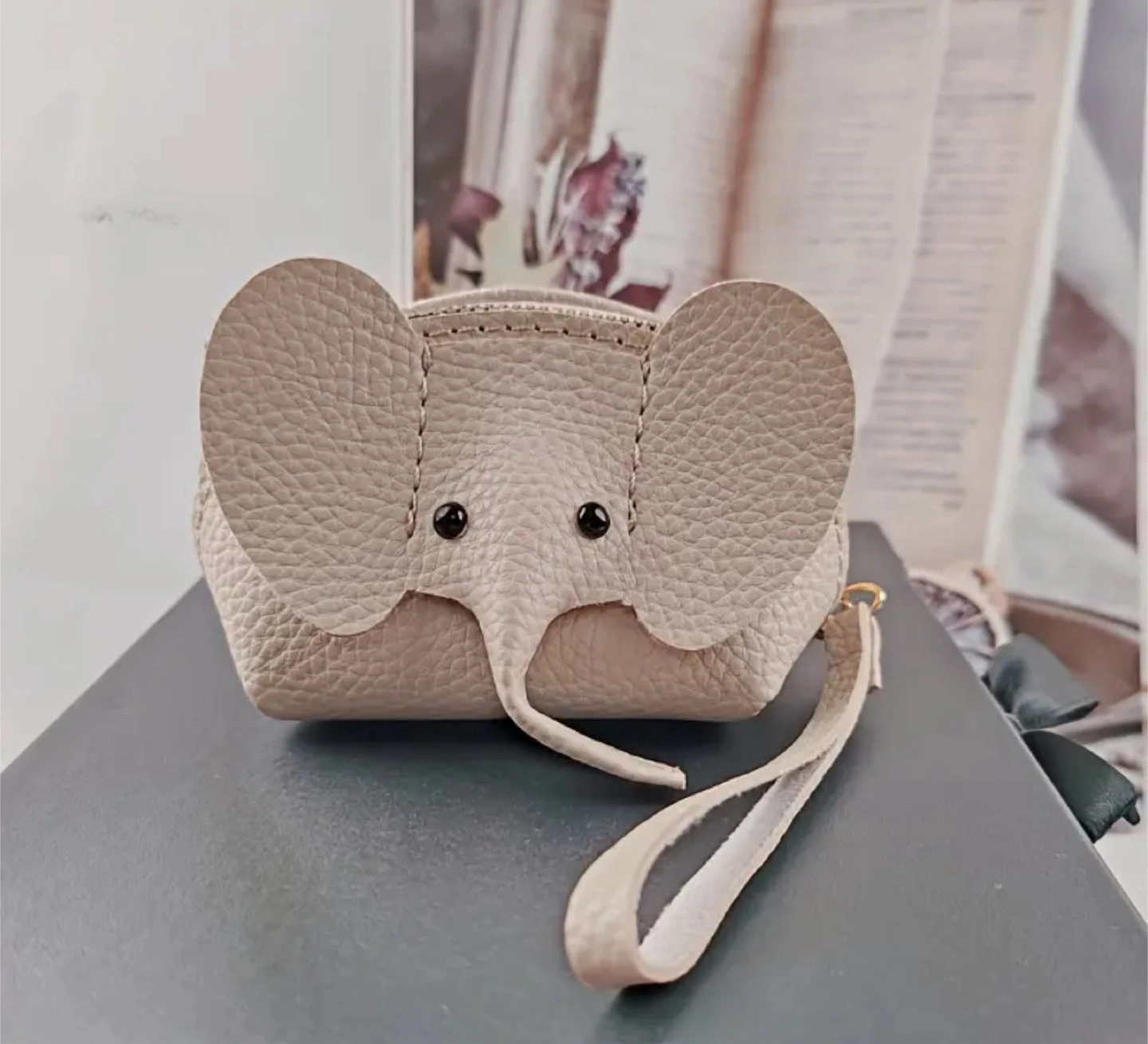 This is an adorable elephant shaped coin purse! It's a unique and cute way to carry your change or small items. It has a wrist strap for easy carrying
